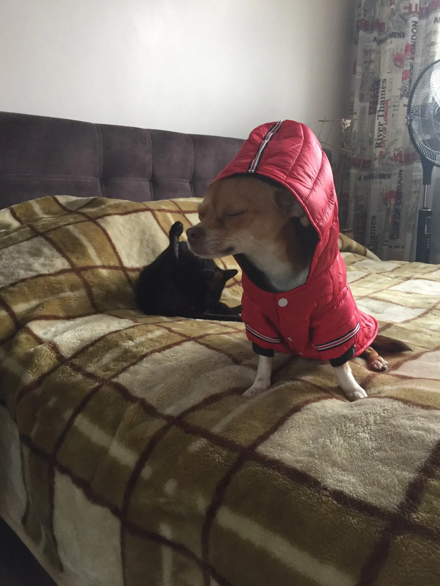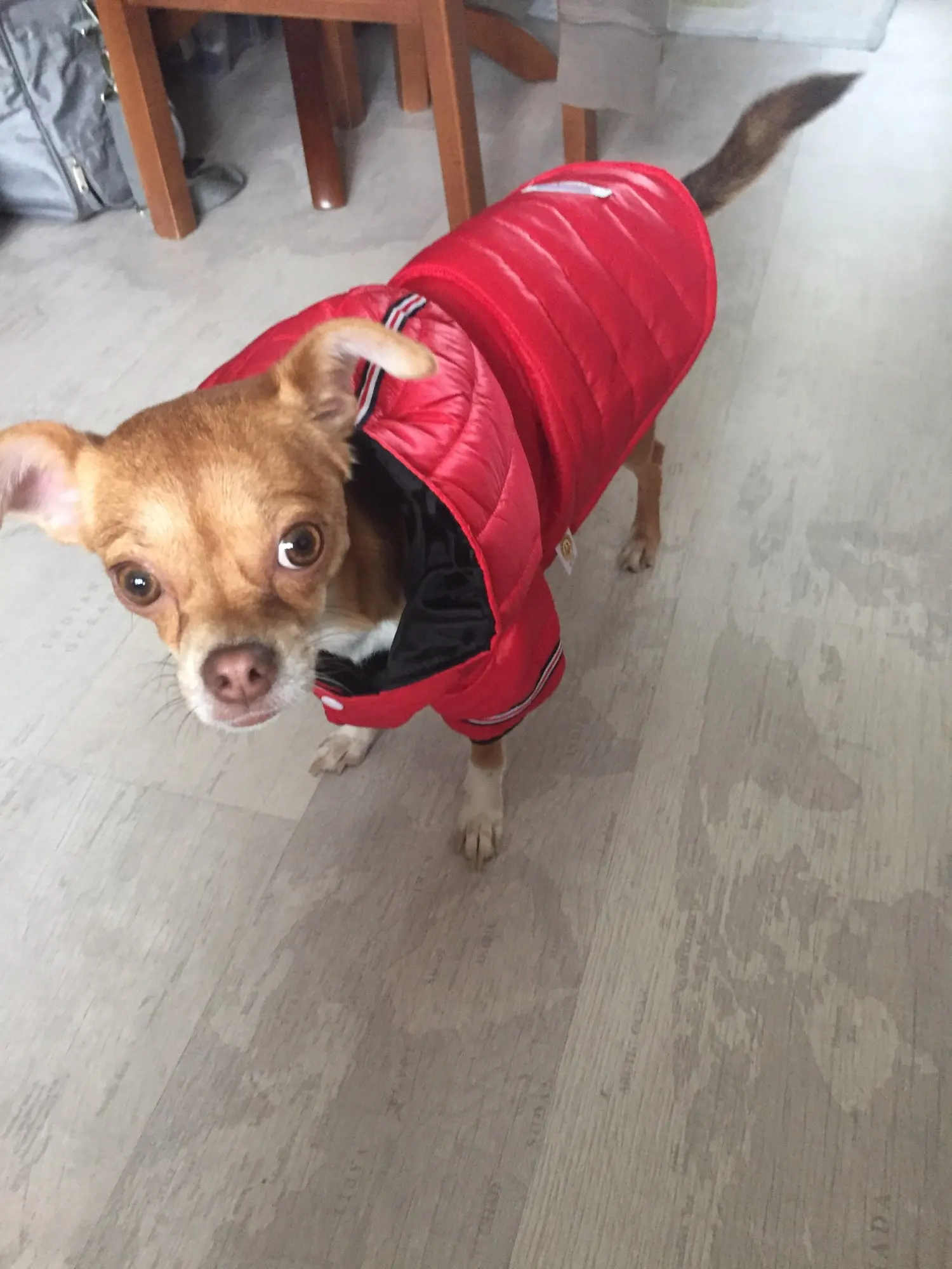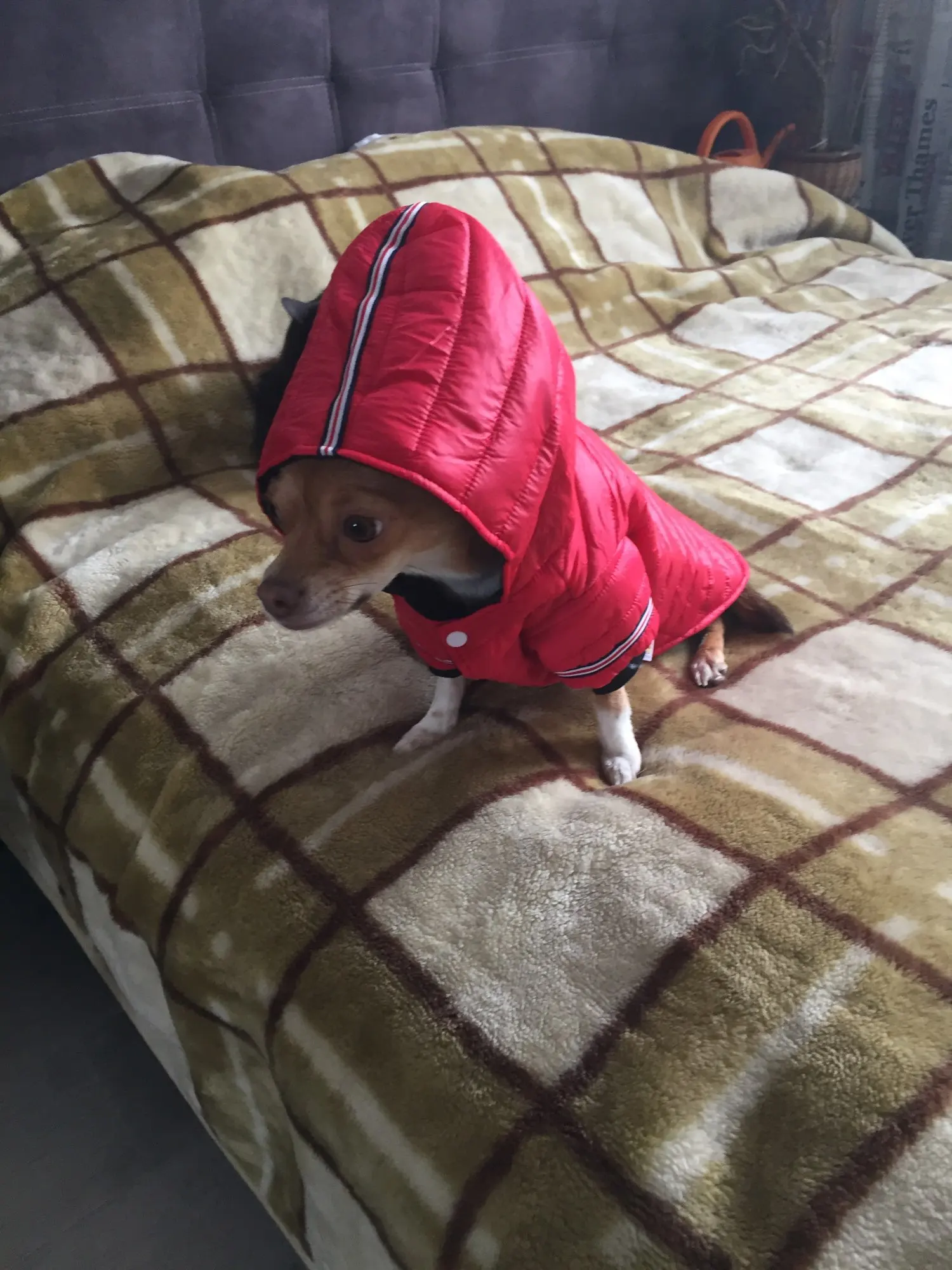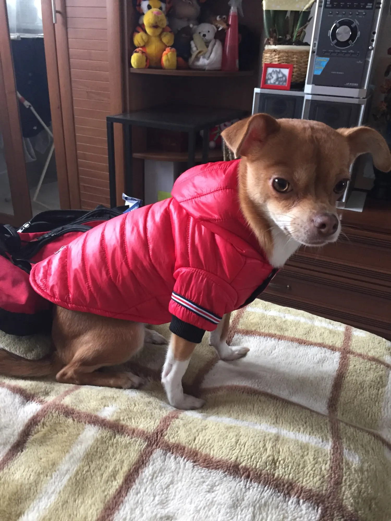 ставлю пять звёзд, с виду неплохая курточка, пошита аккуратно, естественно не зимняя, тоненькая. на стандартную чихуа весом от 2.6 до 3 кг хорошо. за такие деньги очень даже. продавца и товар рекомендую. брала за 364руб.