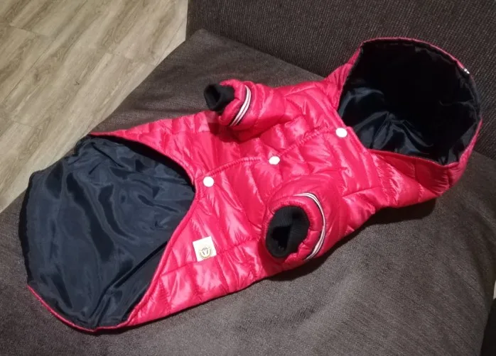 Брала для собакена таксы среднего размера.На Черной таксе будет смотреться очень клево красная куртейка.
