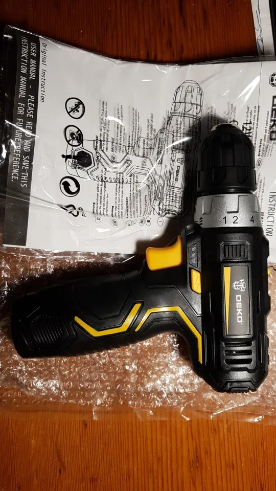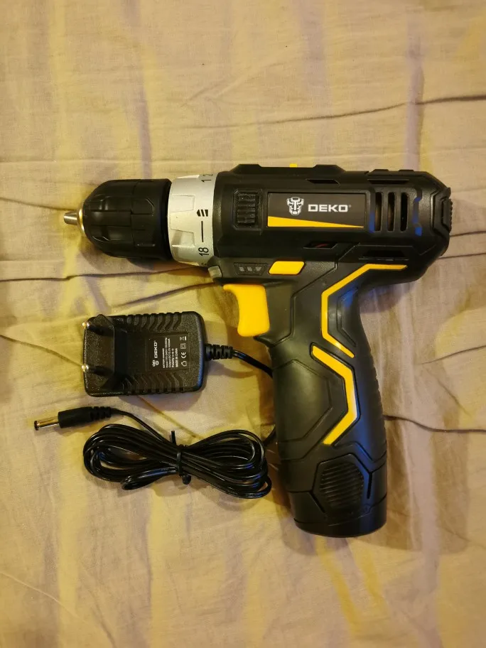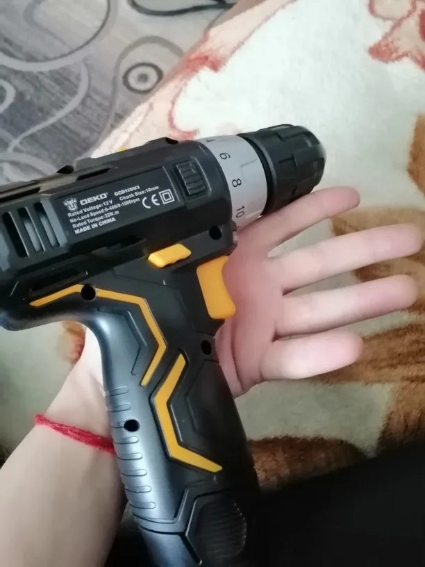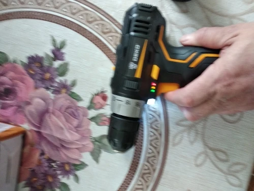 Так себе шуруповёрт. Крутит, вертит, да. Но... Внешне как-то так себе, пластик бликует, выглядит дешёвым. В руке лежит так себе, будто слегка скользит. Оранжевый лучше. Основная проблема - неудобен в работе. переключатель реверса для правши неудобен - с той стороны, где переключатель переключается суставом указательного пальца, он утапливается вровень с корпусом. Тяжело нажать, приходится тянуться кончиком пальца, неудобно. Самая жесть - переключатель скоростей. Он в целом тяжёлый, а на паре экземпляров реально только двумя большими пальцами удалось передвинуть. потом наверное раздрочится, но это жесть просто. Для сравнения, оранжевый имеет лёгкий переключатель скоростей, переключатель реверса очень удобен. только щели в корпусе, в том что коробка открывается сверху. Есть ещё оранжевые, на которых коробка открывается большой стороной - те собраны хорошо, выглядят качественно, но ипет мозг переключатель, но он придрачивается со временем. Короче, этот черный самый неудачный из всех