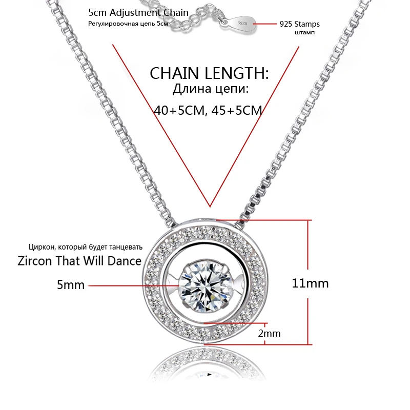 Ожерелье женское из серебра 925 пробы, с круглым кулоном из циркония