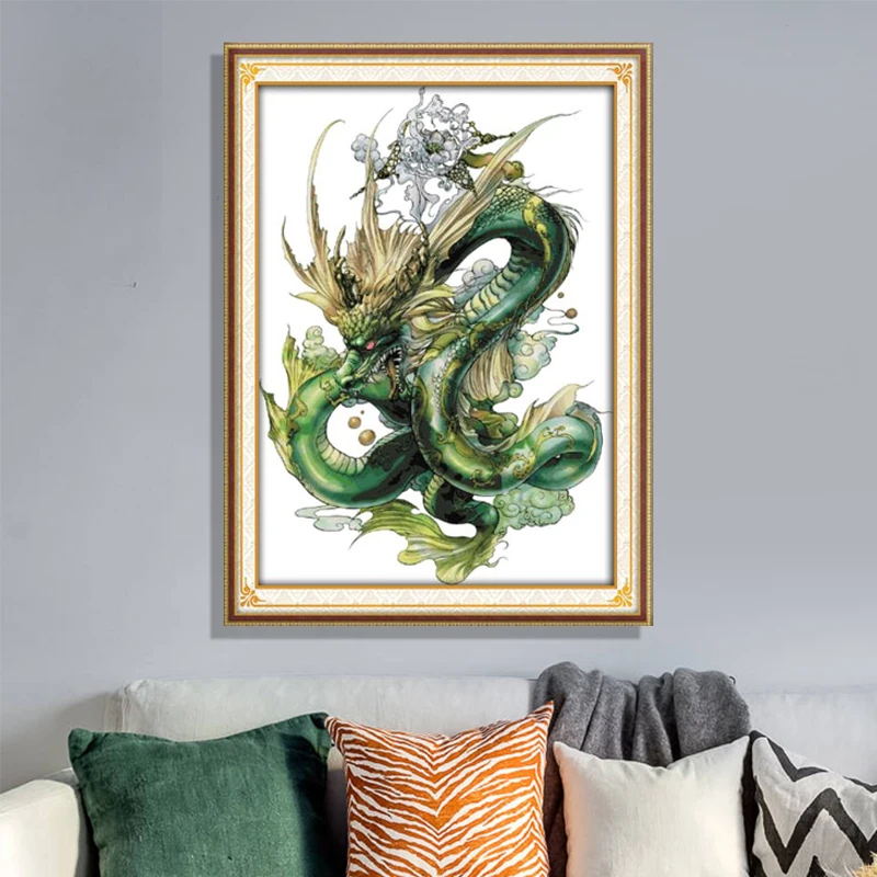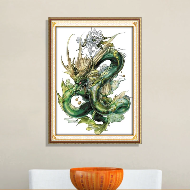 Зеленый дракон вышивка крестиком наборы печатная Ткань Вышивка Рукоделие Набор 11CT14CT DIY Ручная работа ремесла домашний декор живопись