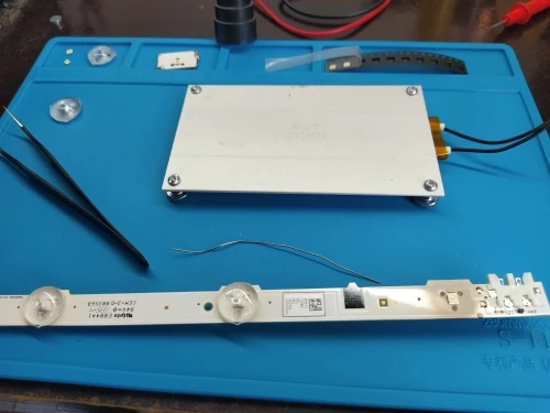 Модуль пришел за 20 дней в сборной посылке. В комплекте силиконовый коврик, пинцет и изолента. Все работает, нагревается моментально. Вобщем отличная штука, светодиоды отпаивает на ура.