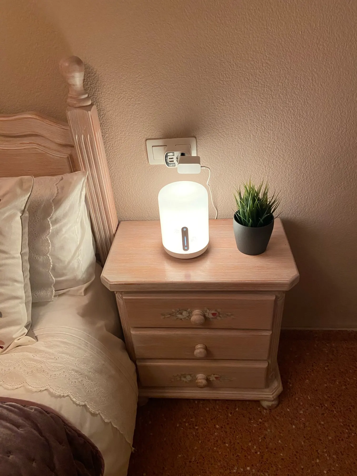 Отличная лампа. Он может быть обработан с помощью приложения Xiaomi home и имеет много цветов. Плохо только то, что вилка китайская, а адаптер, который они посылают, довольно плохой.