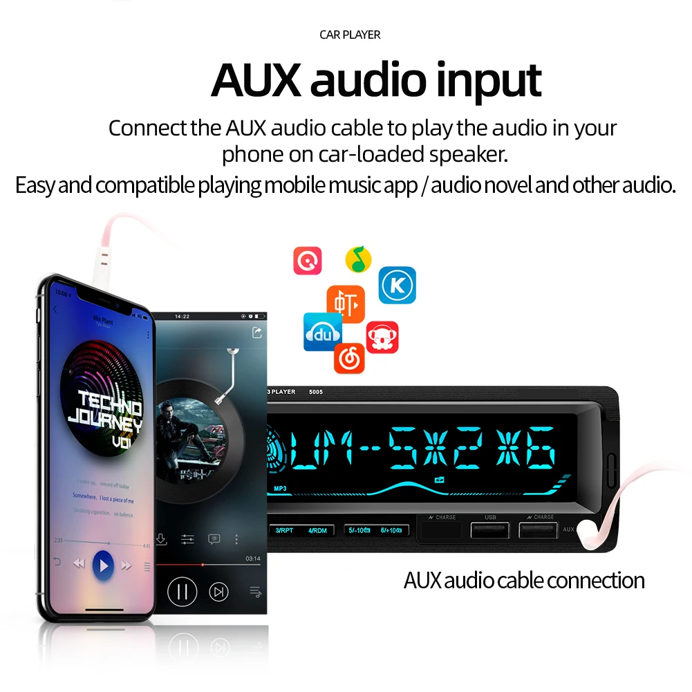 13, Aux: можно подключить мобильный телефон, MP3, MP4, MP5 и другие аудио через машину