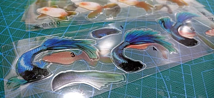 5 листов, синие золотые рыбки, УФ-Стикеры из смолы, декоративные ст...