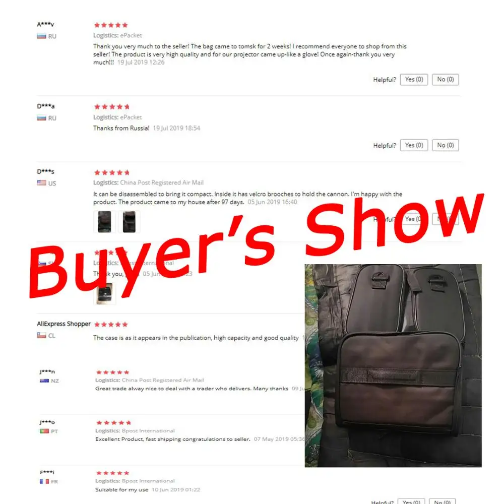 Товар качественный. Размер подошёл для двух видов проекторов (ещё осталось место, поэтому если хотите более плотную упаковку в сумке, то можно брать меньшего размера). Спасибо продавцу за оперативную и качественную доставку.