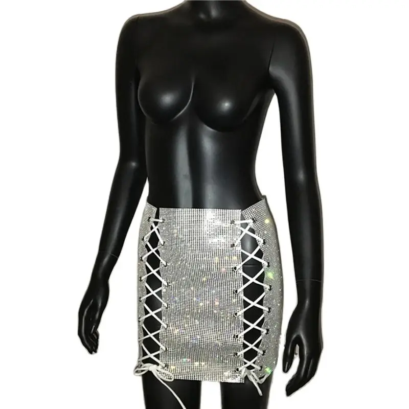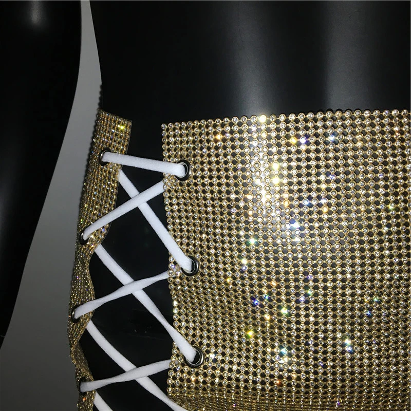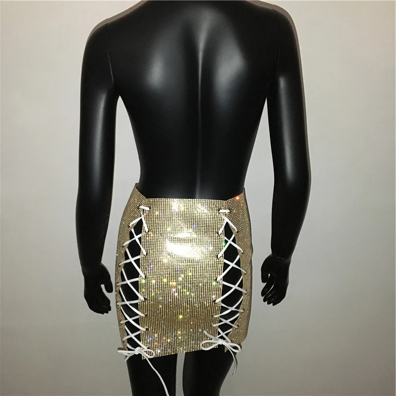 Женская Блестящая мини-юбка со стразами и металлическими кристаллами, кружевная пикантная Клубная мини-юбка со стразами, для ночного клуба