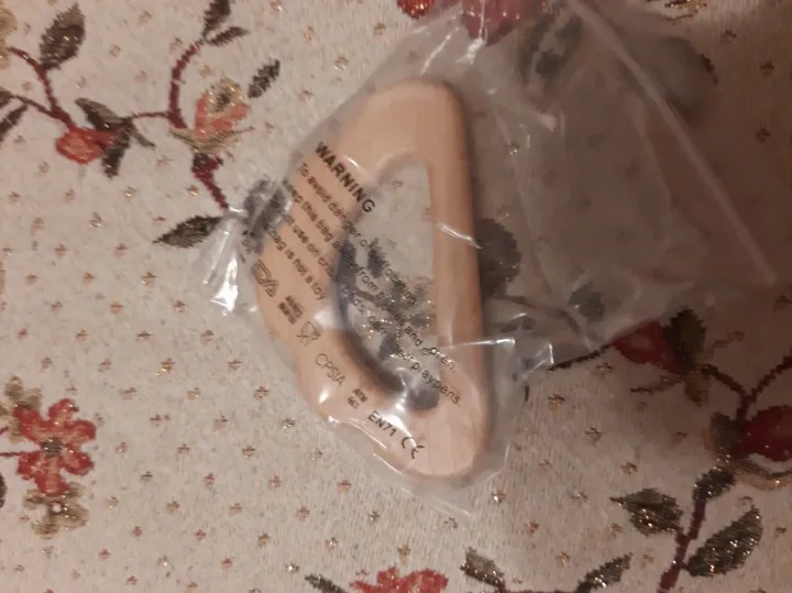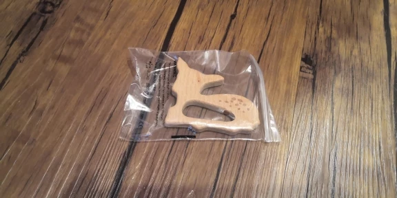 деревянный прорезыватель соответствует описанию. небольшой, аккуратный, отлично отшлифован. брала для своих поделок по скидке продавца за совсем малую стоимость. отправил на 5-й день после оплаты. доставка в пункт выдачи заказов СПб в сборной посылке за 18 дней. трек отслеживался. упакован в простой пакет с пупыркой. товаром довольна. рекомендую.