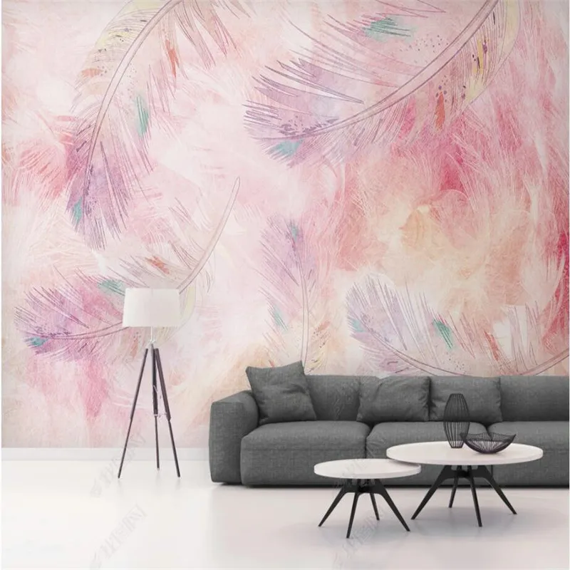 Скандинавский современный розовый фон с перьями, настенная бумага 3D для гостиной, Интернет, знаменитостей, блоггеров, украшения для спальни, настенная бумага 3D