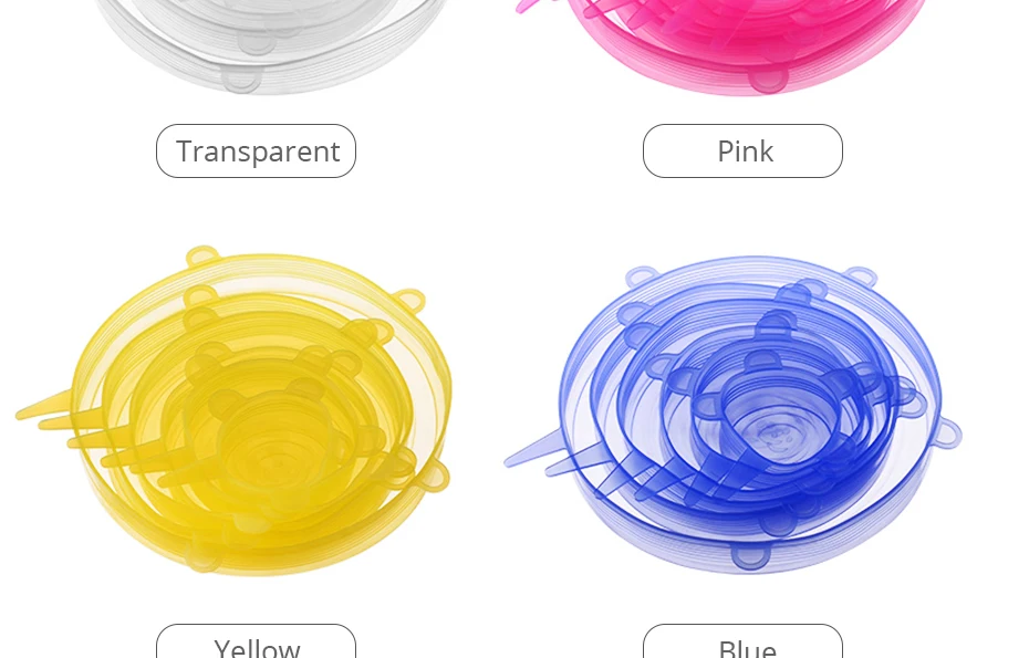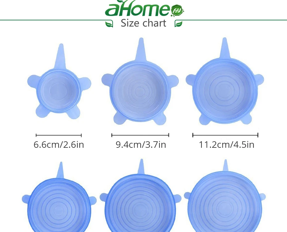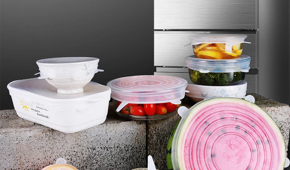 6 размеров в одном наборе, продукт обладает хорошей эластичностью и может растягиваться, чтобы покрыть различные формы и размеры фруктов, овощей и чаш,