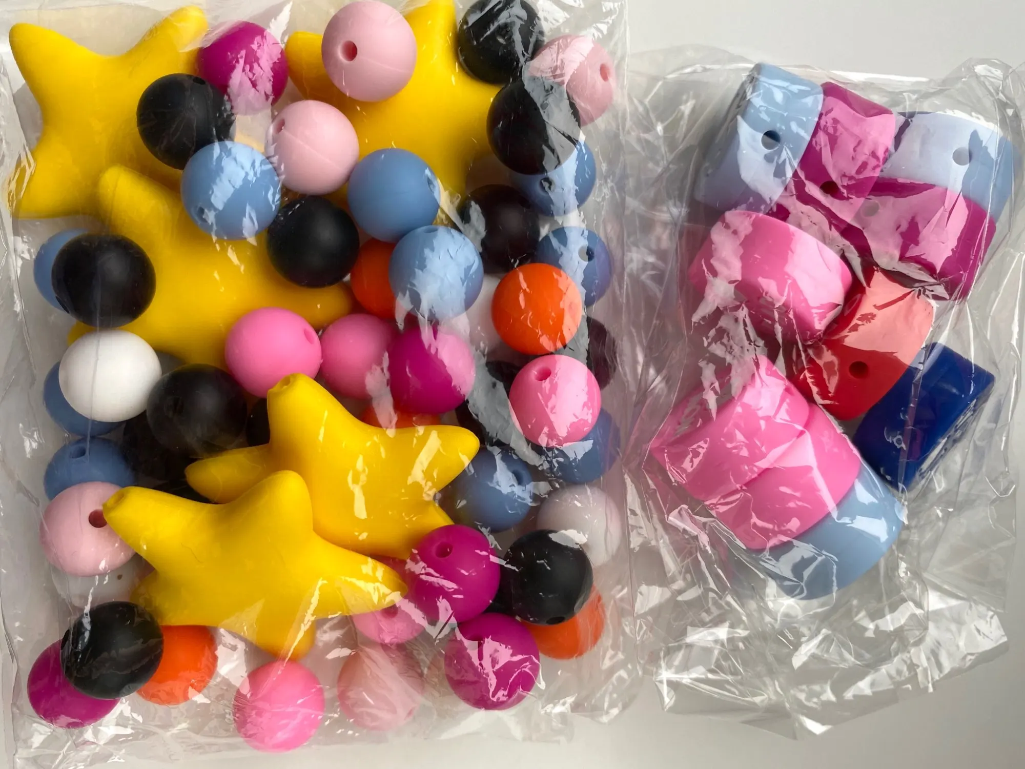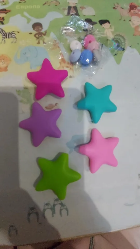 Силиконовые бусины со звездами, 12 цветов, Детские зубные кольца для прорезывания зубов, жемчужные игрушки для детей, для прорезывания зубов, цепочка для соски, ожерелье, аксессуары сделай сам