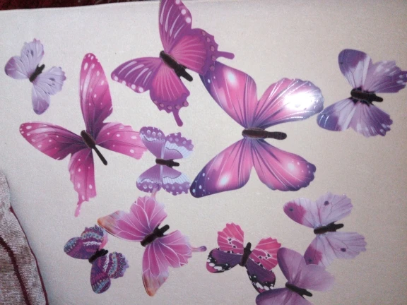 Бабочки классные, светятся прожилки в темноте. В комплекте 12 штук с двусторонним скотчем