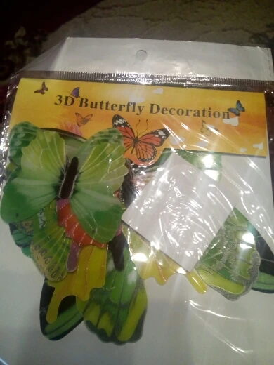 Заказ быстро подтвердили, быстро отправили. Бабочки очень нежные и красивые, отлично дополнили мои наклейки. Крепятся на двухсторонний скотч. Моя кухня просто ожила. Бабочки разных размеров и расцветок. Рекомендую. Смотрятся красиво. В темноте действительно светятся. Но не как фонарь, а их видно. В общем нежно, красиво, необычно. Опять же развлечение, если делать с детьми.