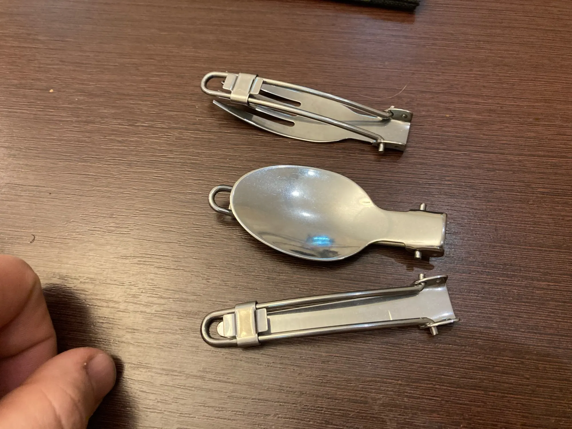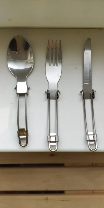 Набор не плохой. Очень похож на вилку и ложку из Сплава, но в сплаве вилка складывается по правильному, а в этом наборе вилка складывается не логично. По толщине очень хорошо. Нож не понятно зачем в таком наборе... Все равно в походе всегда есть рабочий нож и таскать при рабочем ноже складной-барство...