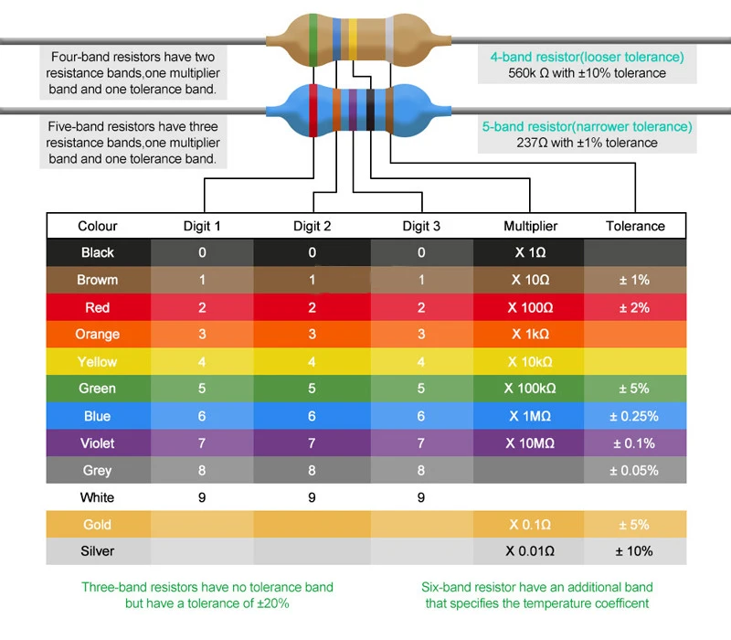 1K Ω, 2K Ω, 2,2 K Ω 3,3 K Ω 4,7 K Ω, 5,1 K Ω,