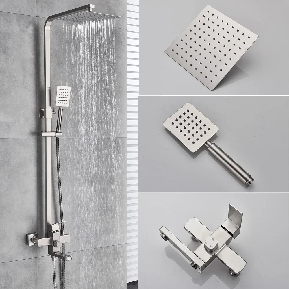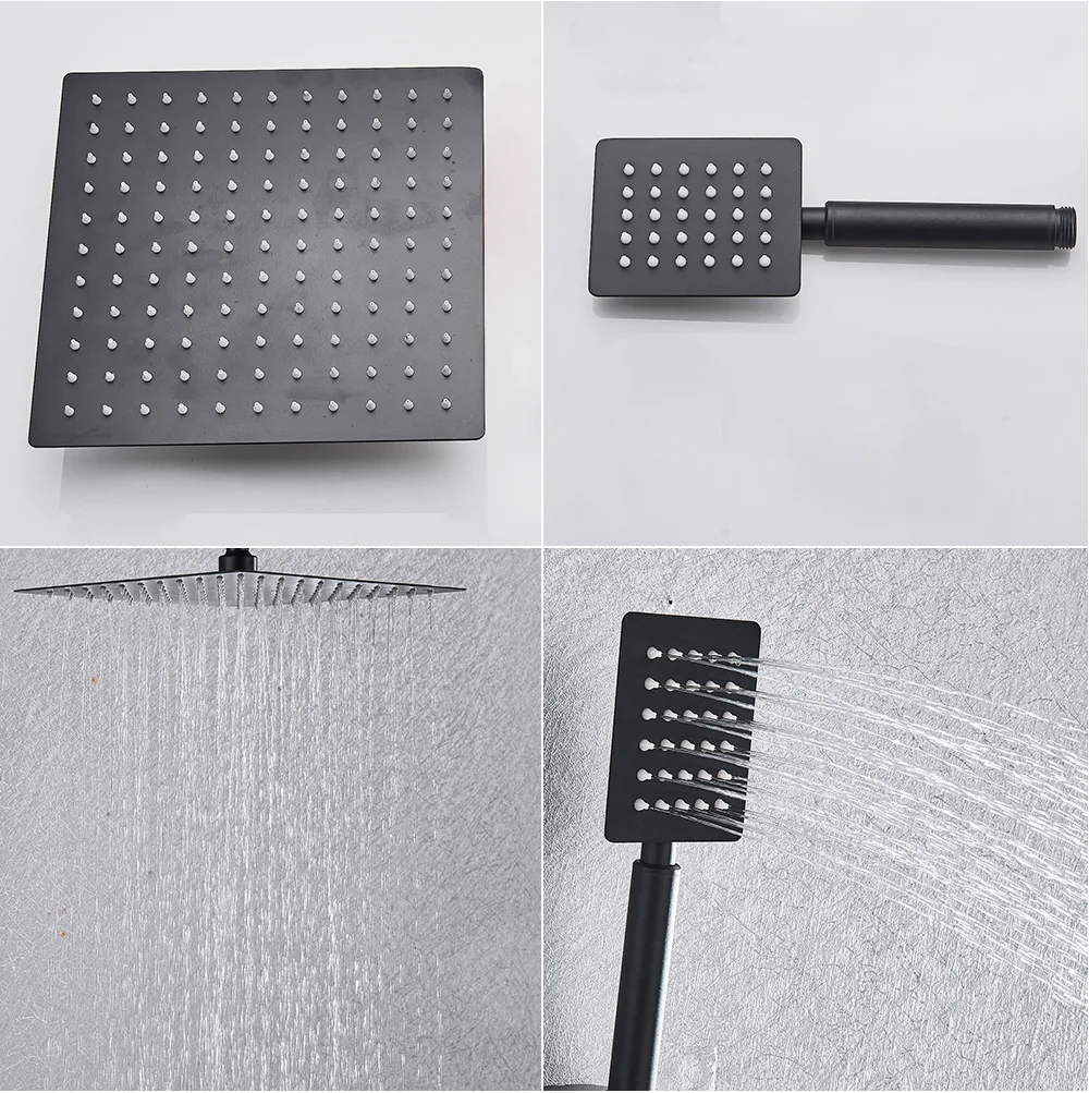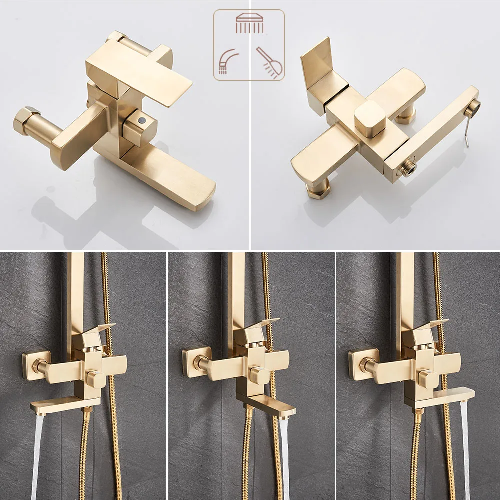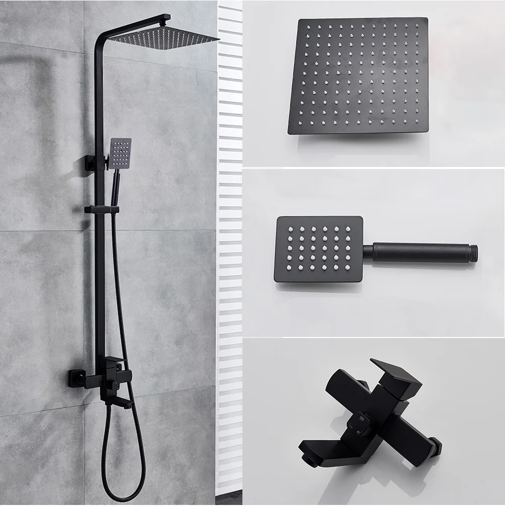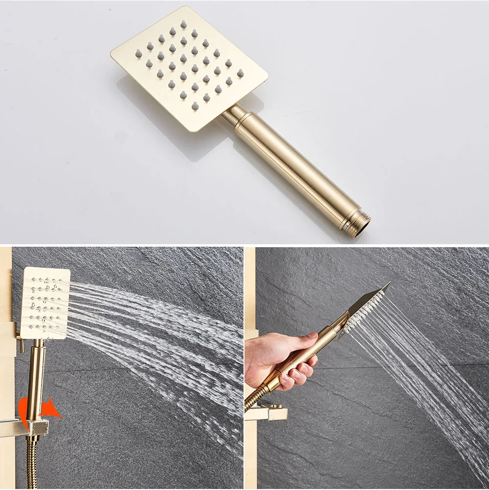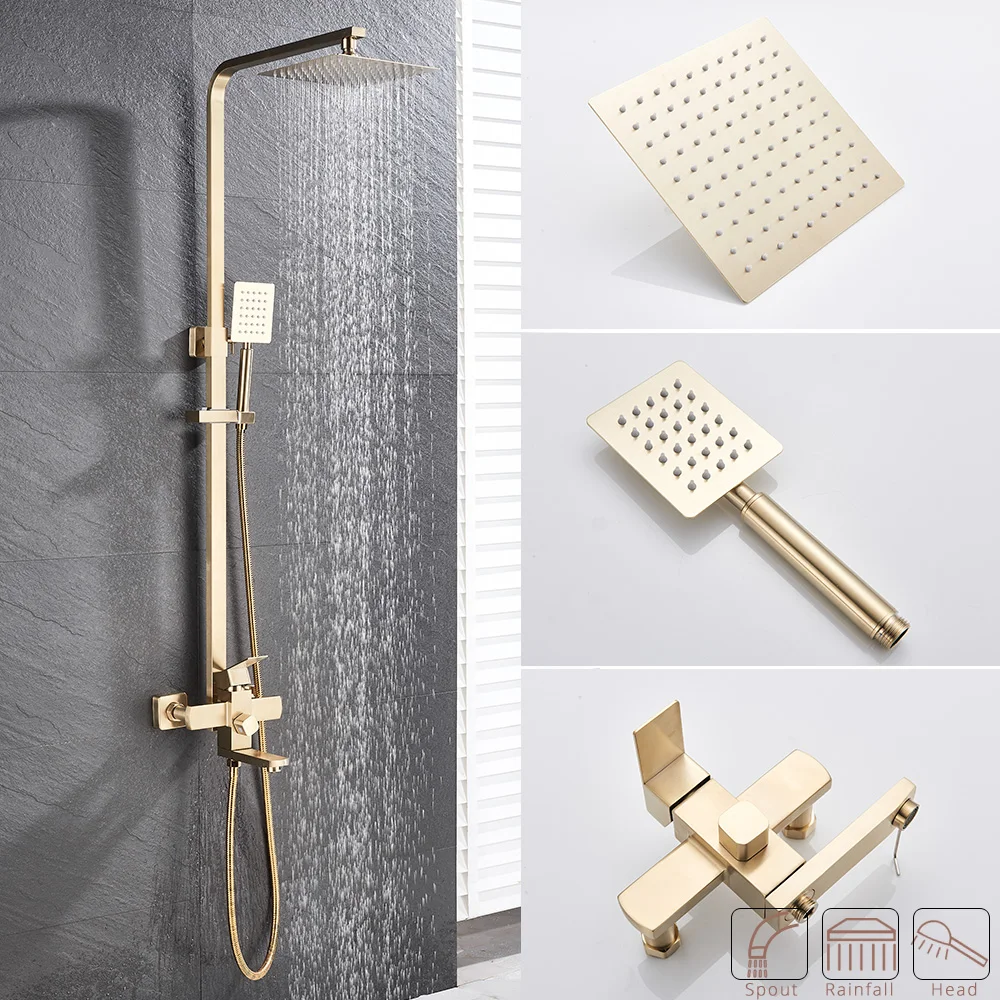 Матовый золотой душевой кран в стене 8 "из нержавеющей стали, набор для душа для дождевой ванны, поворотный носик для ванны, черная душевая колонна для ванной комнаты