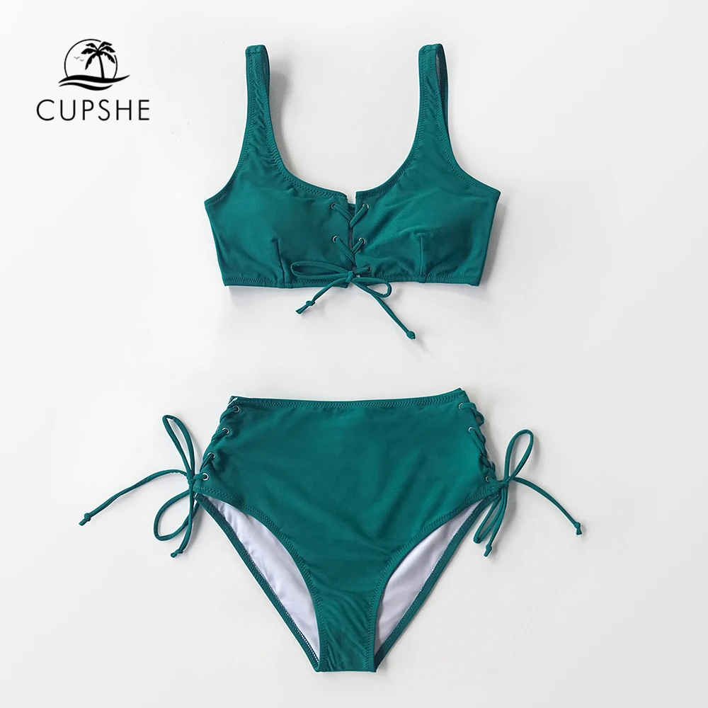 CUPSHE Jade зеленый спереди узел с высокой талией бикини наборы сек...