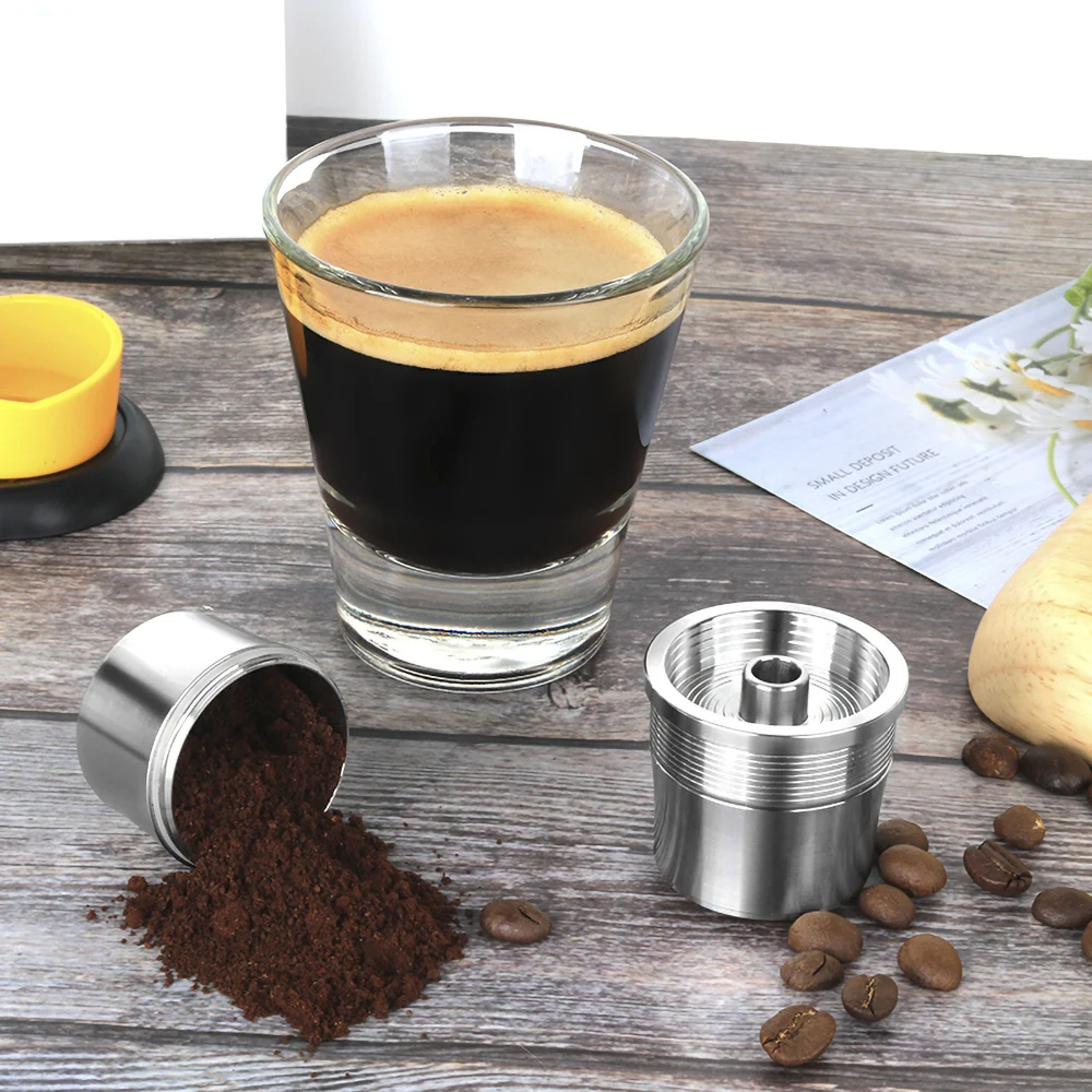 Доволен капсулами. Купите 2 или более, если вы хотите сделать по крайней мере 2 кофе одновременно. Протестировано и нашло правильный путь после 10 усилий. Положите как минимум 2 белых совка и сильно надавите на них с помощью инструмента, чтобы сделать насыщенный ароматный кофе. Спасибо продавцу за подарки.