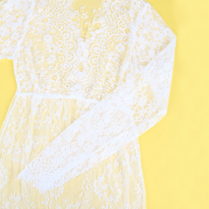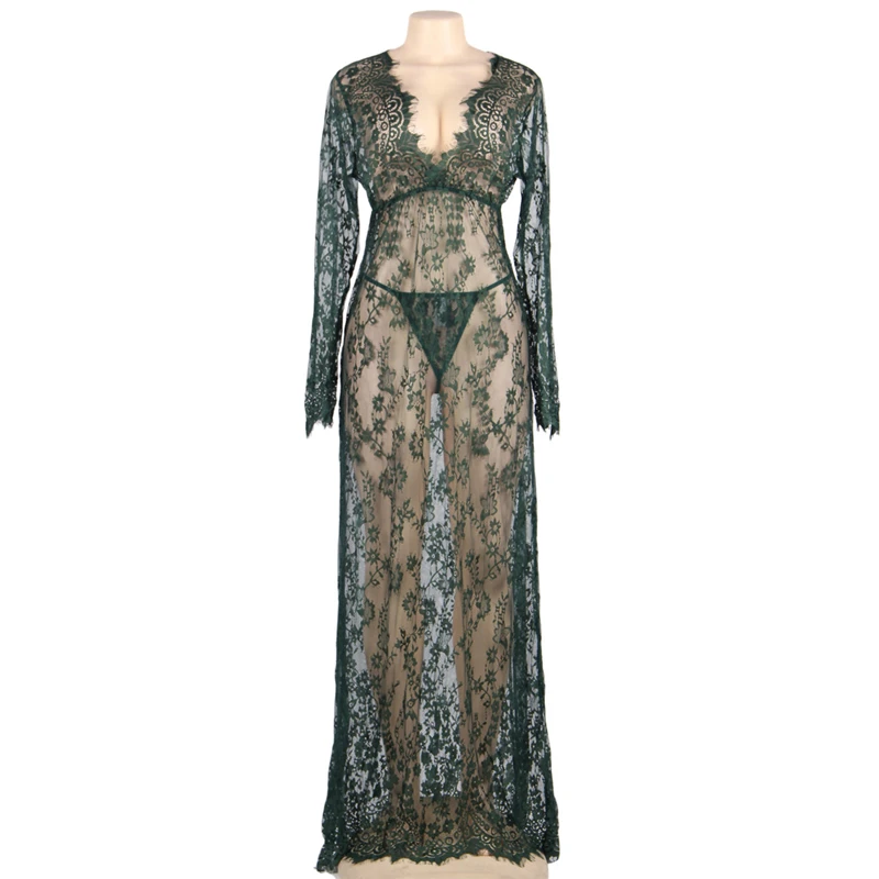 Длинное кружевное платье Ohyeahlover, с V-образным вырезом, 5XL, прозрачное, свадебная Пижама, для беременных женщин, ночная рубашка с длинным рукавом, RL80497