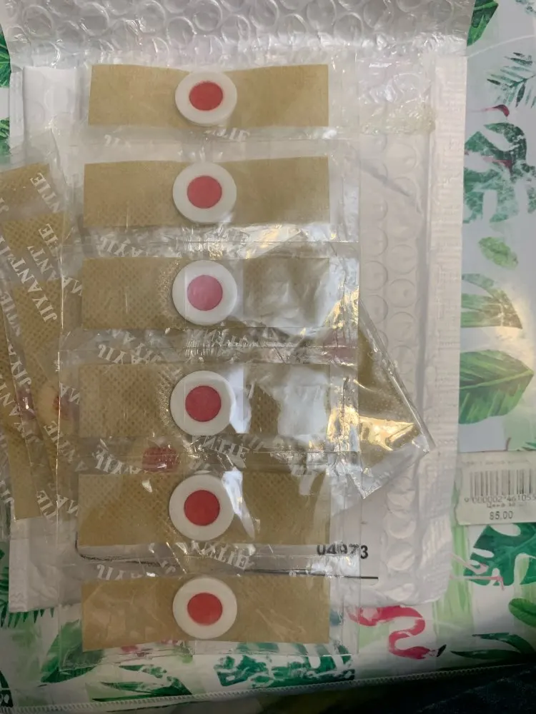 Заказал, 2 месяца ждал. Товар шёл на Камчатку через Чехию. Логистика огонь! Ранее пользовался такими пластырями, у меня между пальцев на ногах вирусные бородавки, 6 штук. После применения оставались следы от действующего вещества красного цвета, кожа