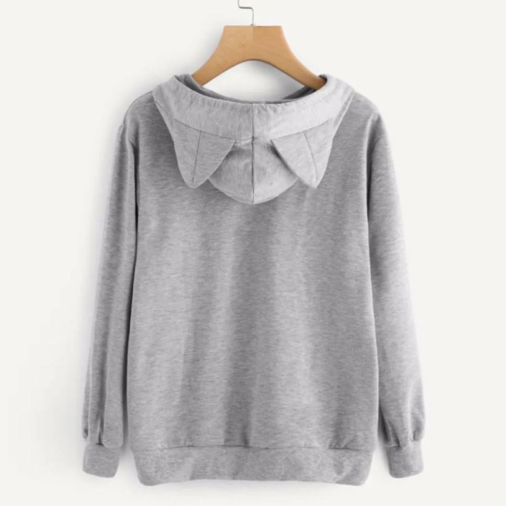 Женская толстовка с кошачьими ушками, забавная толстовка, женские спортивные костюмы, женская модная Осенняя толстовка с милым принтом кота, #256785