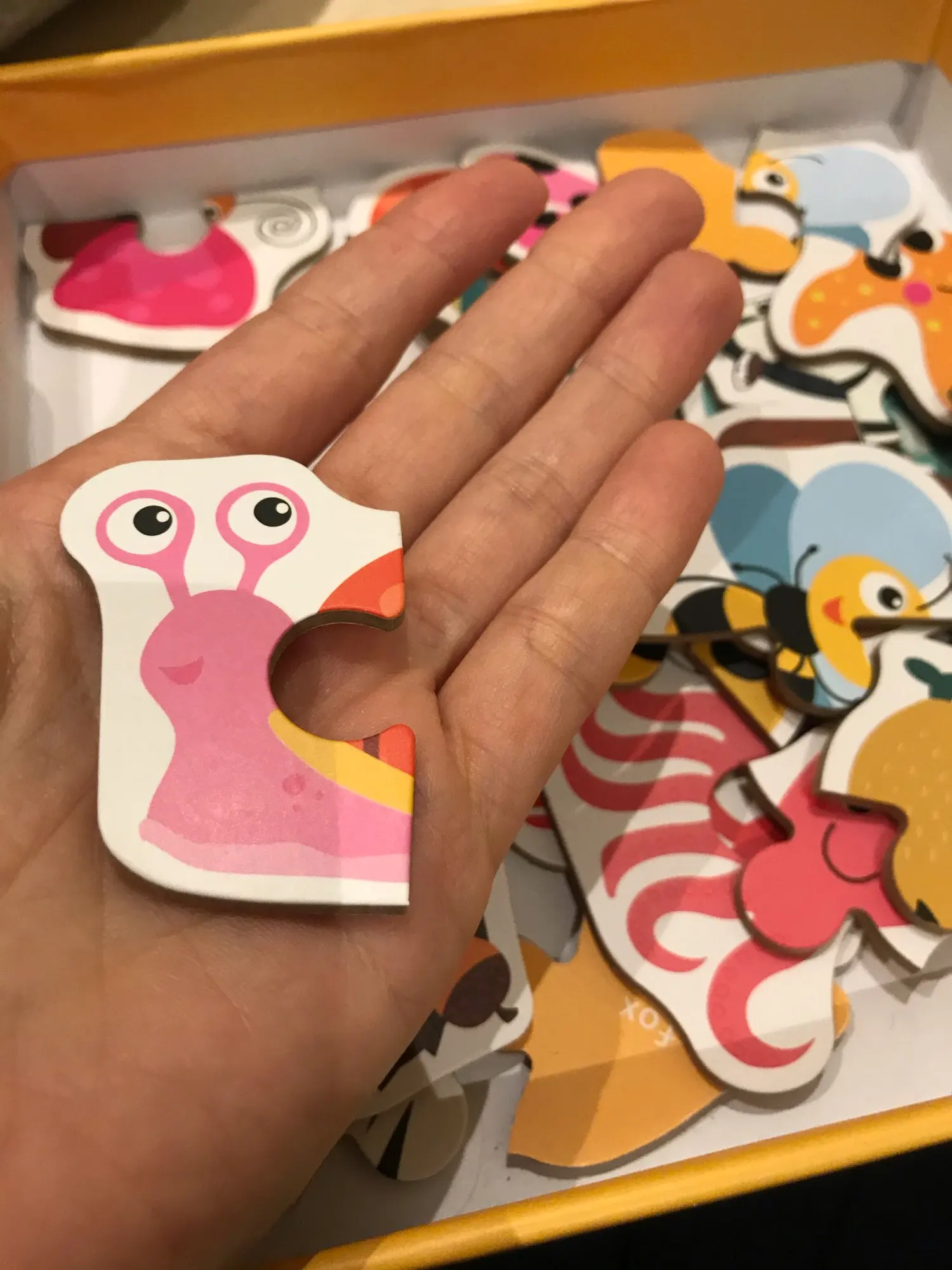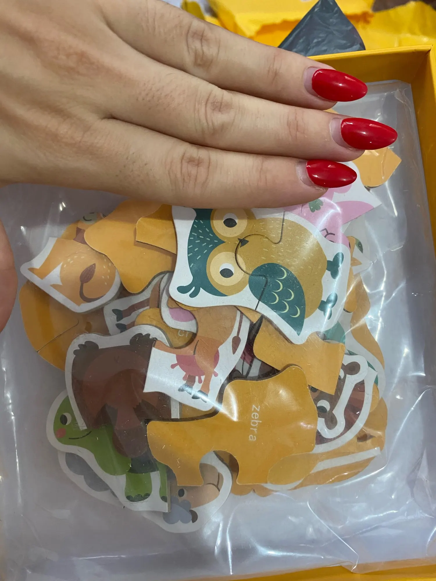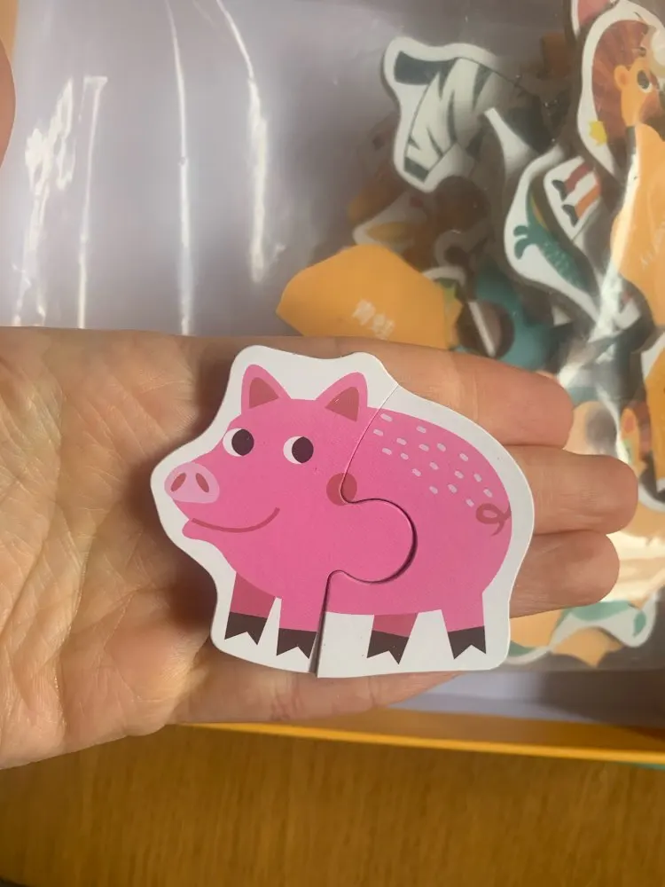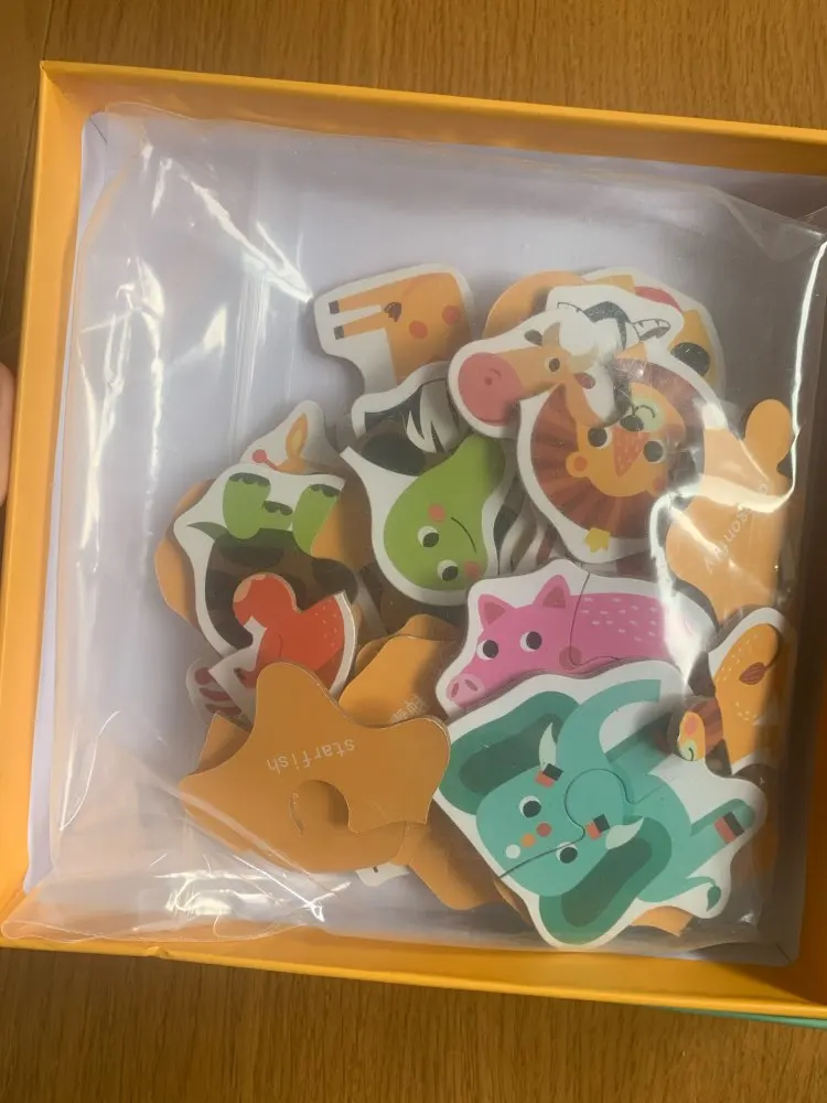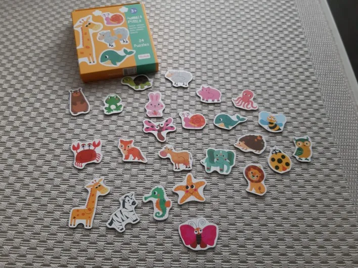 Puzzle zapakowane w śliczny kartonik idealny do przechowywania. Moja półtora roczna córka bardzo zadowolona z puzzli. Są idealnej grubości i wielkości do rączki małego dziecka. Szybka wysyłka - dotarły w dwa tygodnie. Piękne kolory i obrazki. Polecam