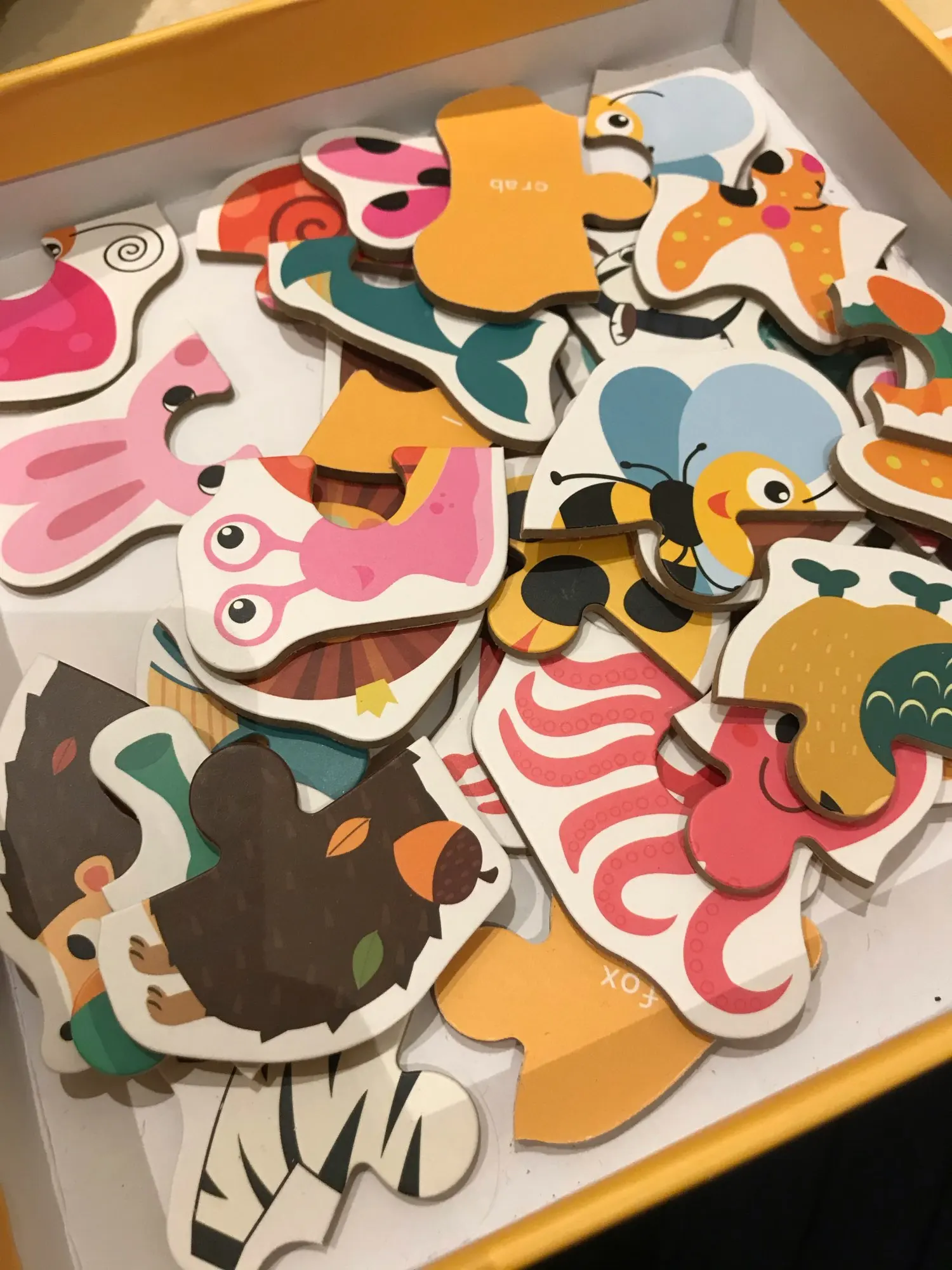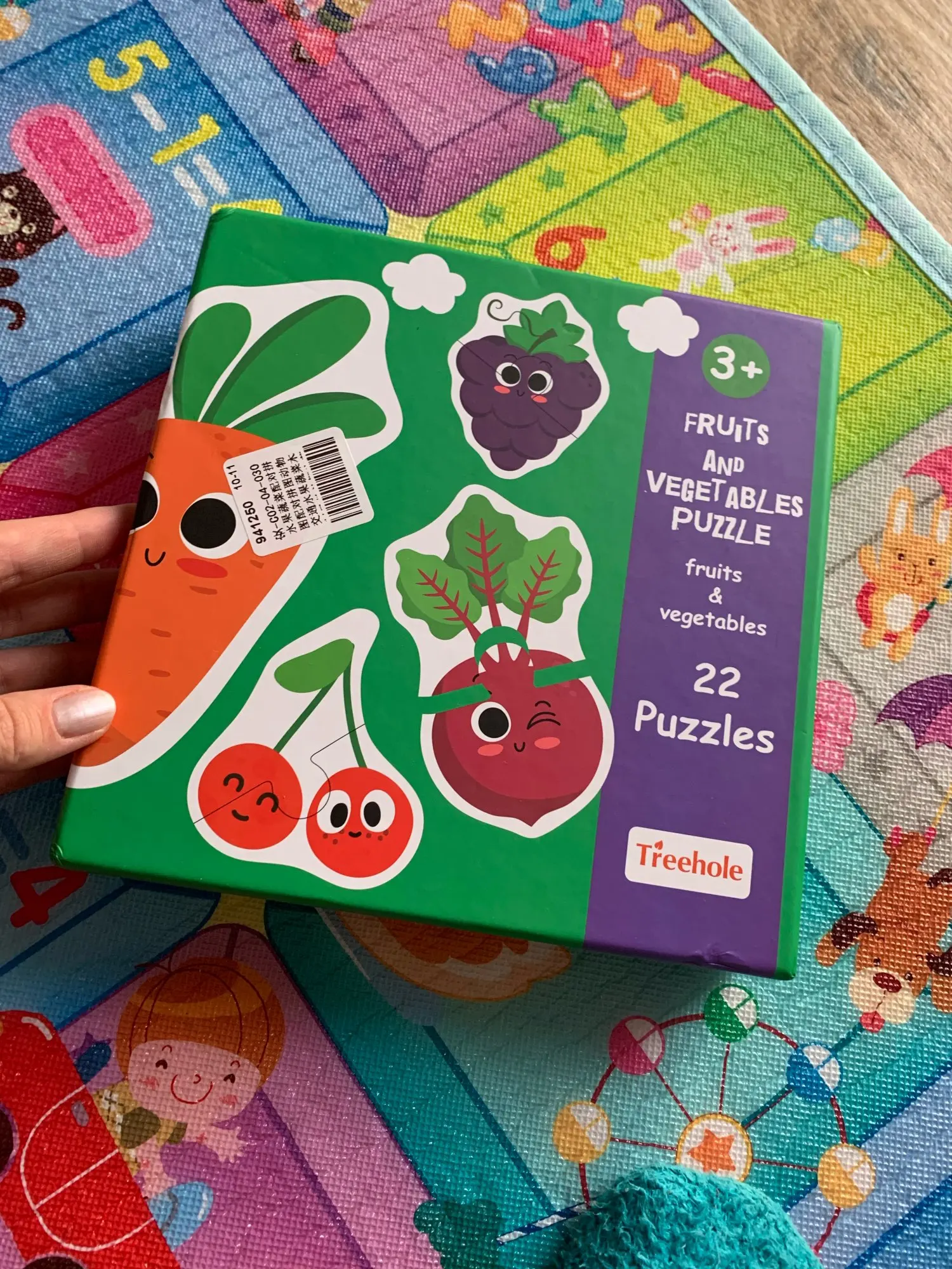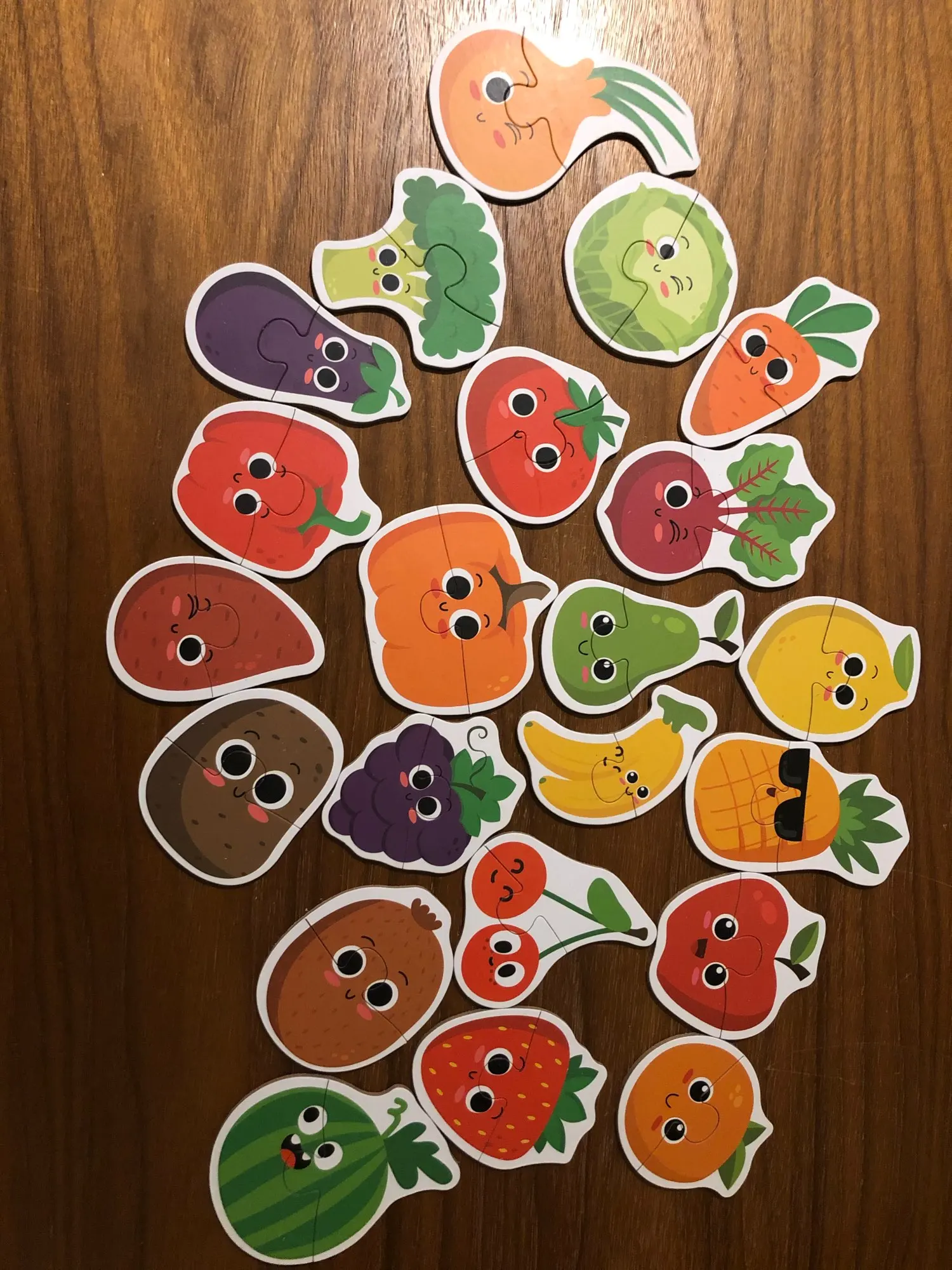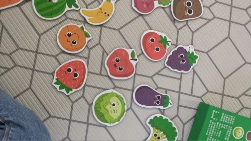 Коробка повреждена. Конверт с пузырчатой пленкой не был достаточно, чтобы защитить его во время транспортировки. Фруктовые Пазлы хорошего качества, толстая головоломка с английской и китайской маркировкой сзади.