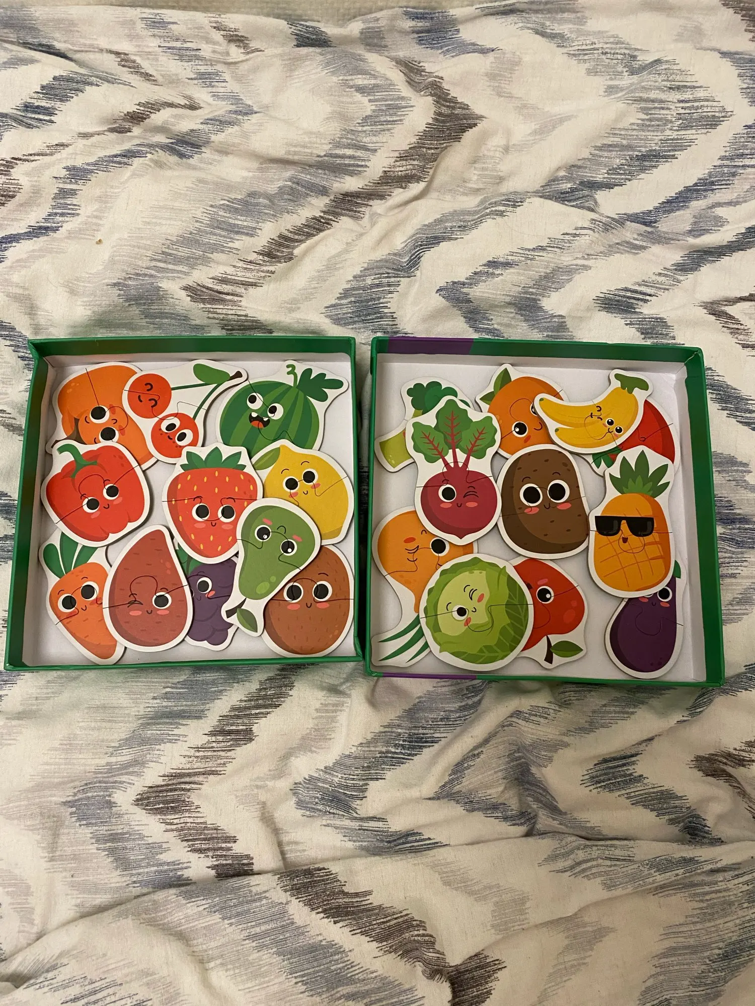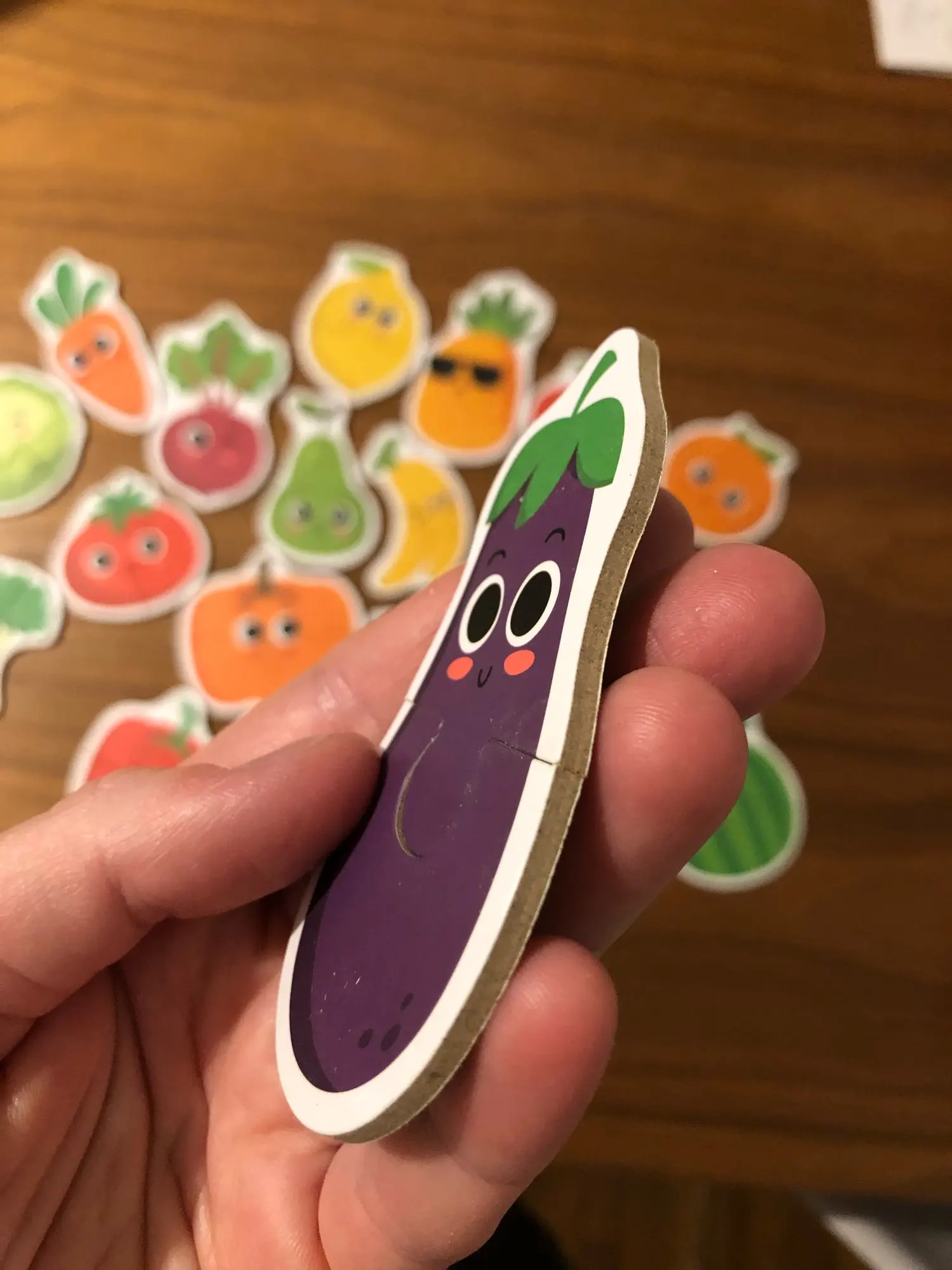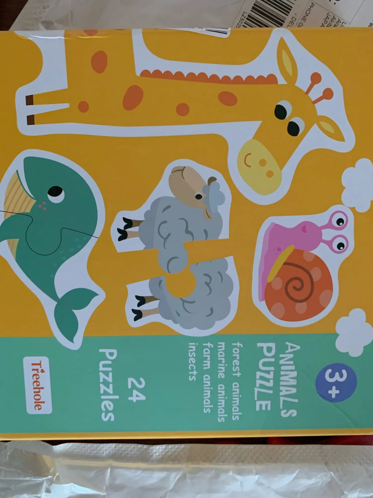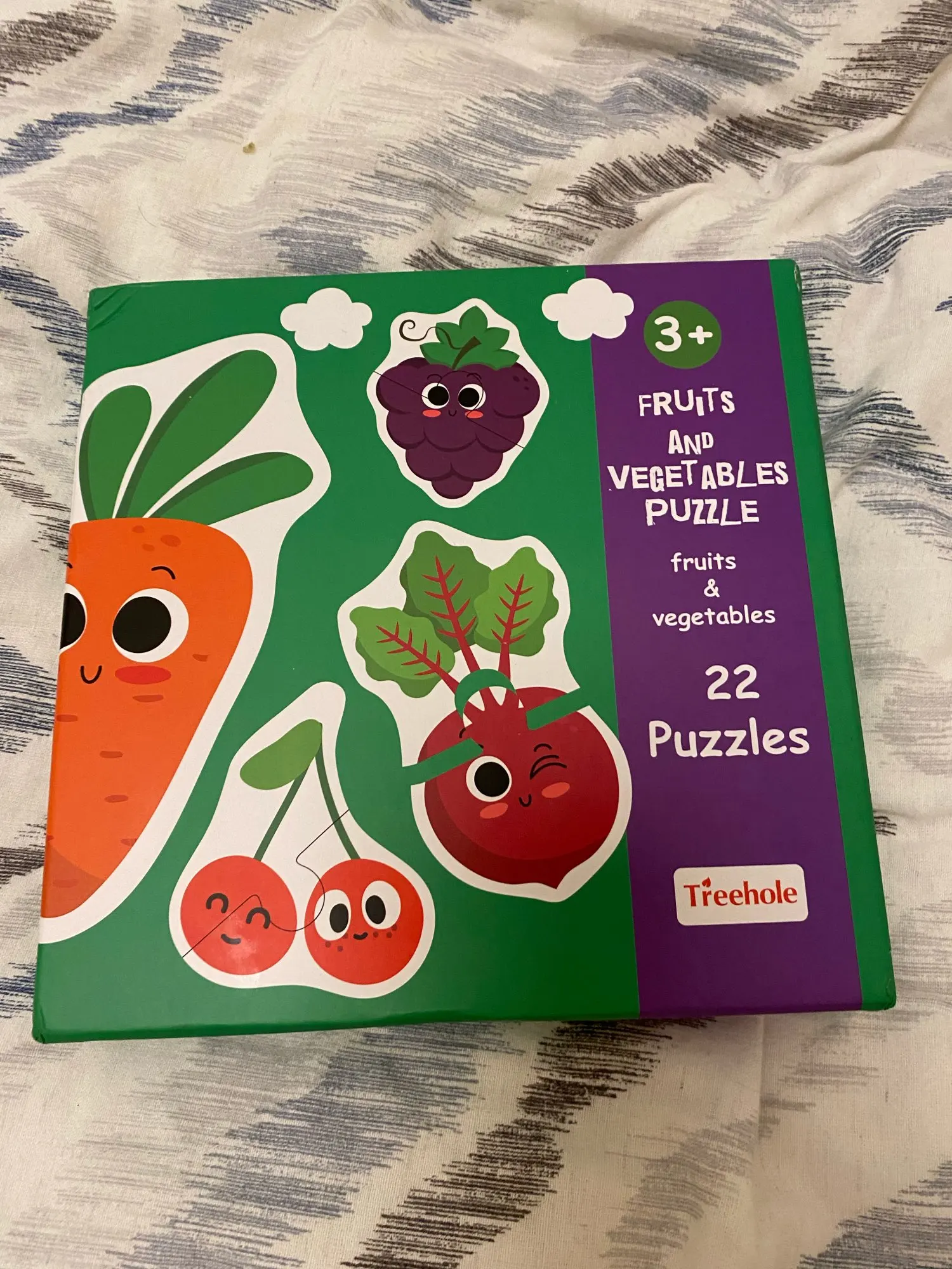 Коробка повреждена. Конверт с пузырчатой пленкой не был достаточно, чтобы защитить его во время транспортировки. Фруктовые Пазлы хорошего качества, толстая головоломка с английской и китайской маркировкой сзади.