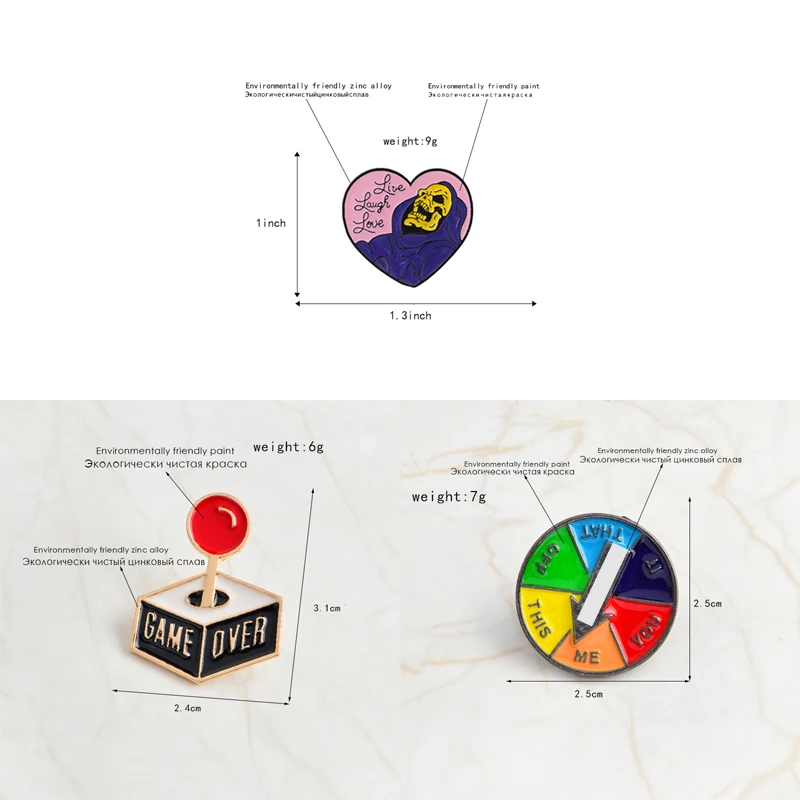 Брошь и булавка Beelejuice кошка смерти сердце воздушный шар игровая Консоль геймпад коробка еды эмалевая булавка значок брошь коллекция