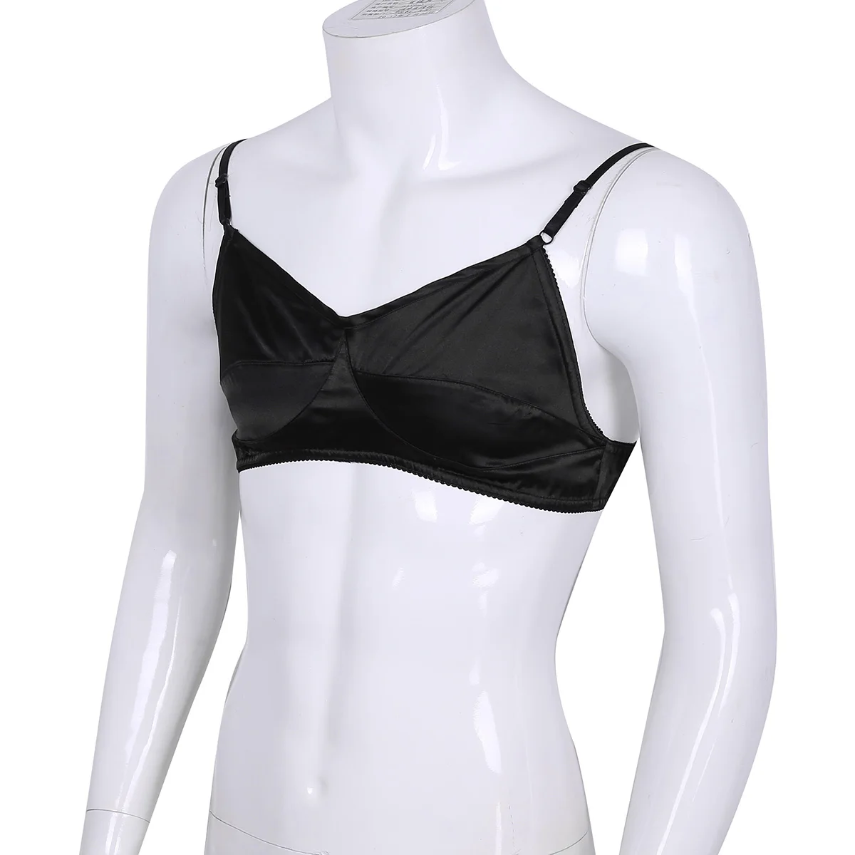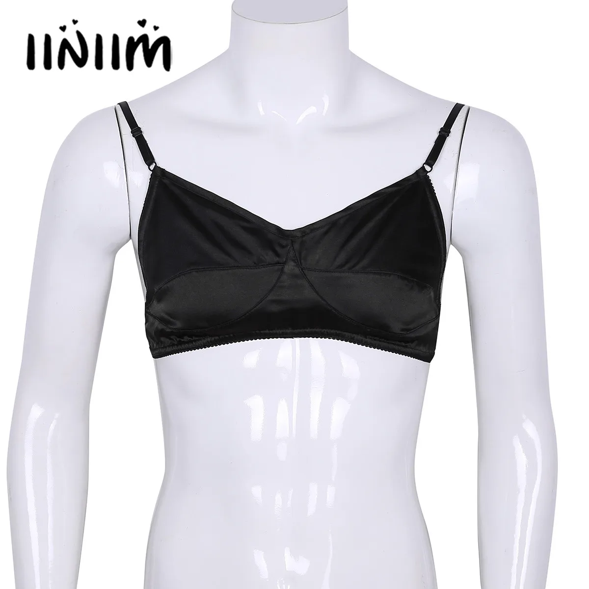 Бюстгальтер Нижнее белье Sissy Мужской без косточек, гладкий Блестящий атласный Бралетт с регулируемыми бретельками-спагетти