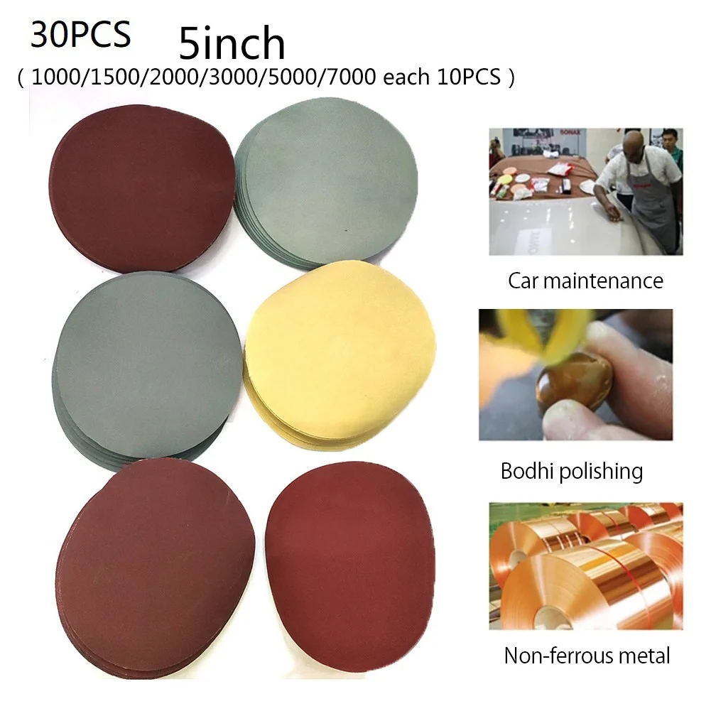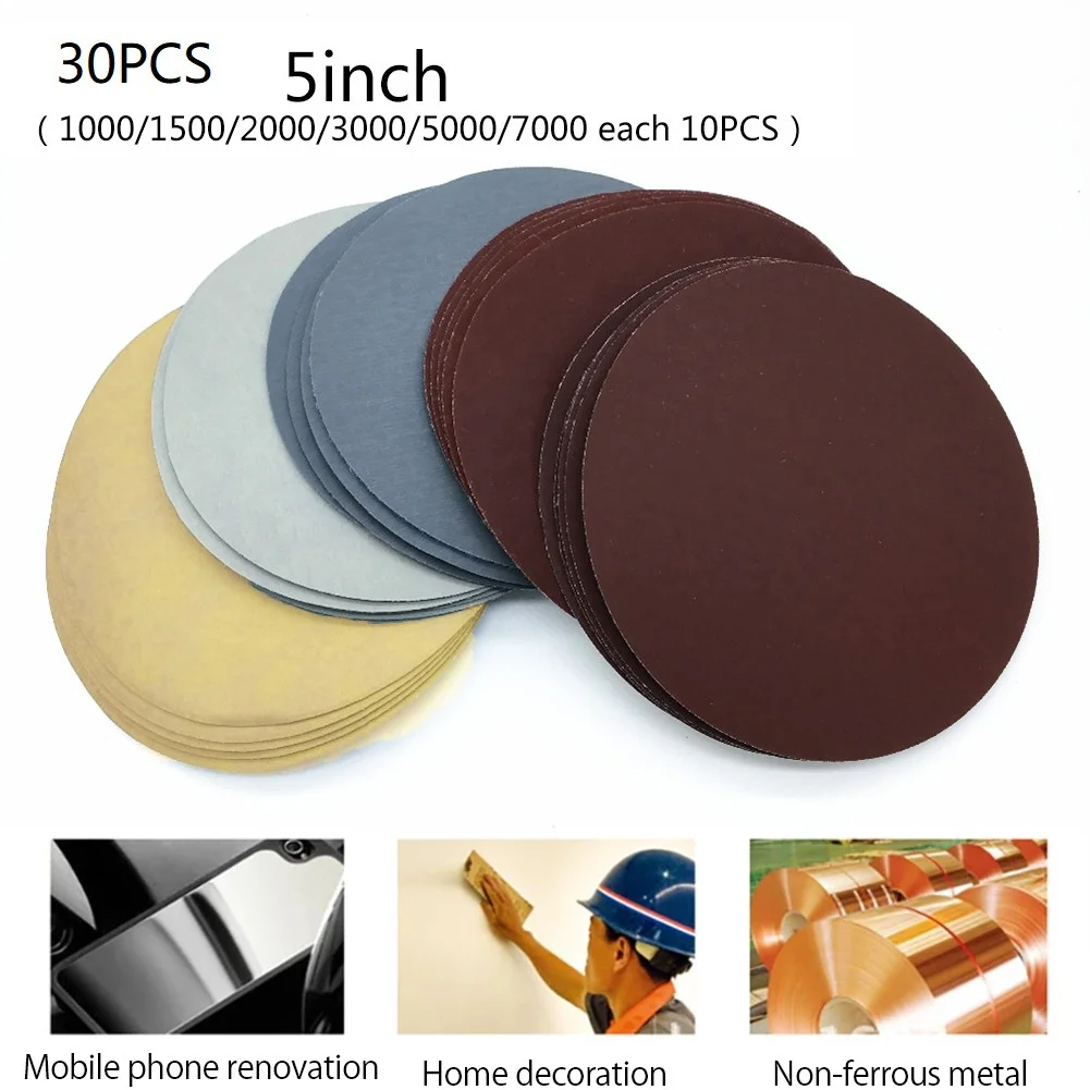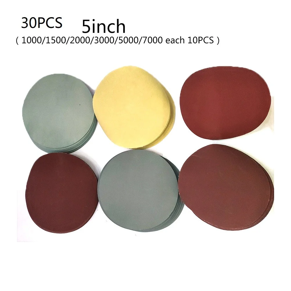 30 шт.компл. 125 мм круглые наждачные диски, наждачные листы, шлифовальная паста, абразивные шлифовальные диски 10001500 2000 3000 5000 7000
