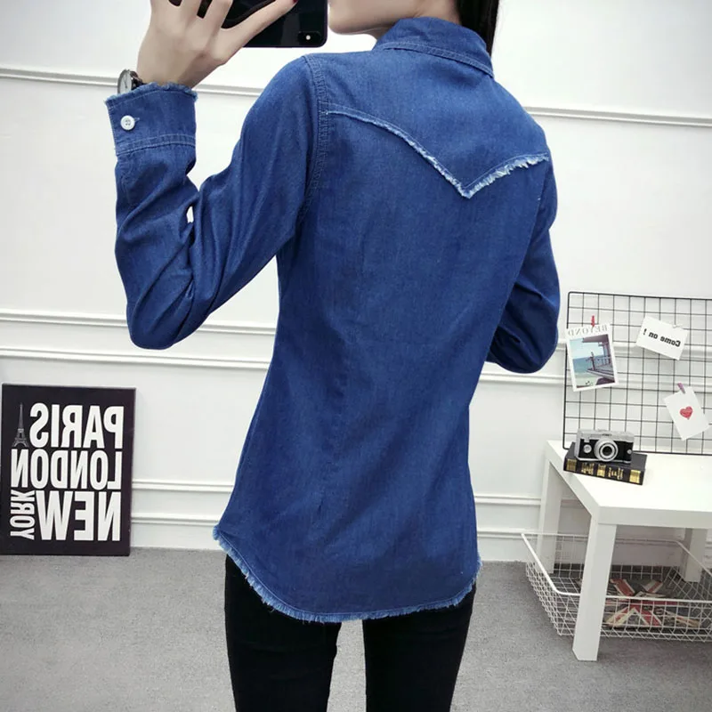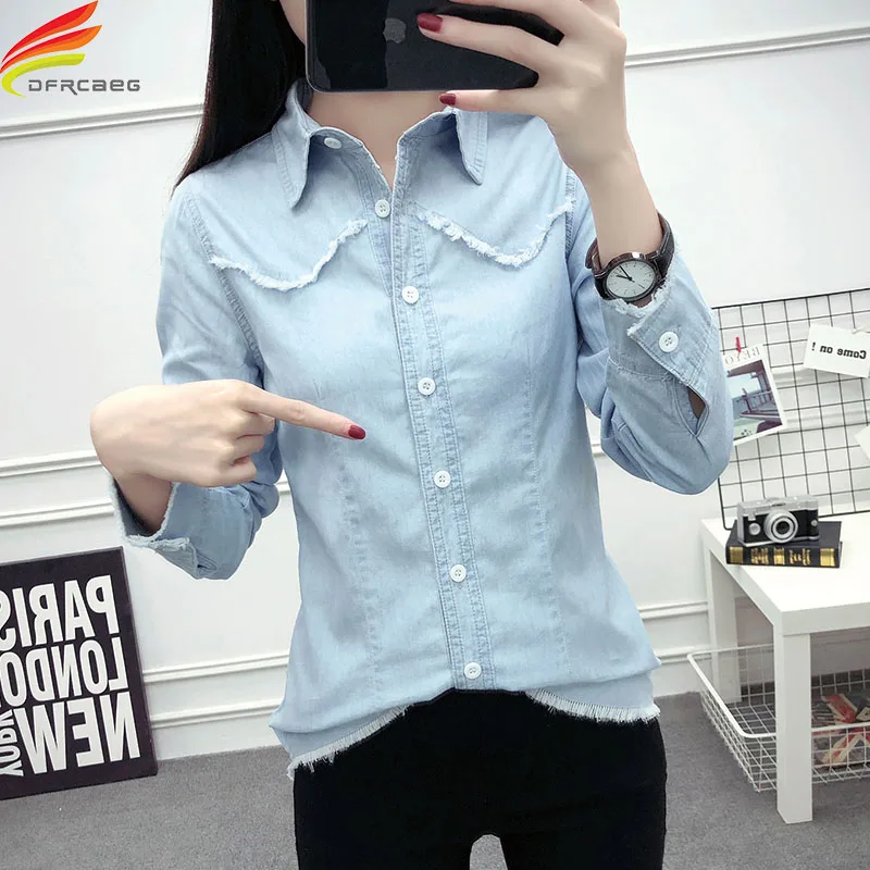 Рубашка женская джинсовая, голубая, с длинным рукавом, весна размера плюс, 2020