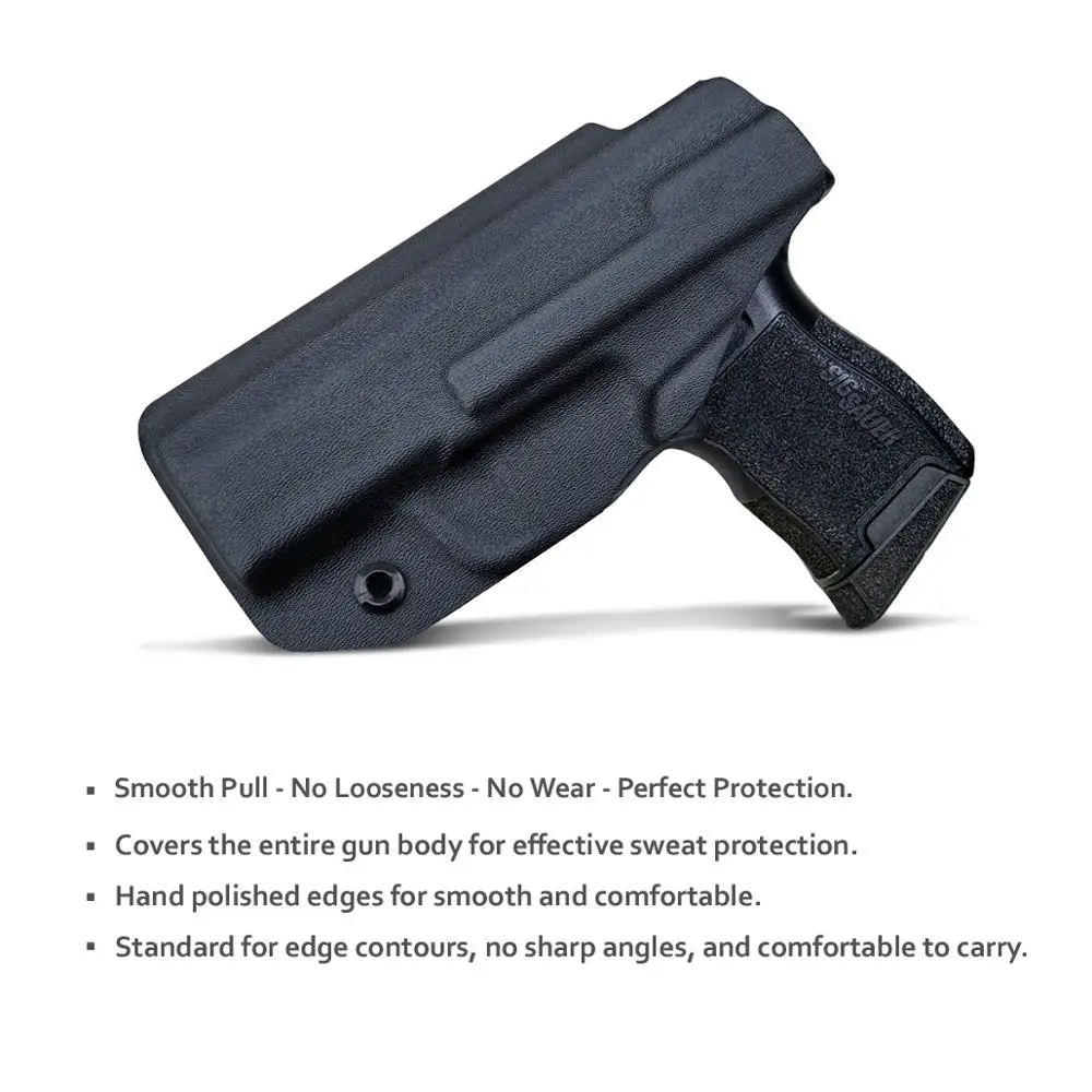 ● Ручная работа US .08 "KYDEX: легкая, прочная, прочная, Влагонепроницаемая и моющаяся, обеспечивает комфорт и уверенность в любой ситуации. Чехол Sig Sauer P365 покрывает весь корпус, эффективно предотвращая пот и избегая зажимов, можно безопасно и безопасно использовать одежду.