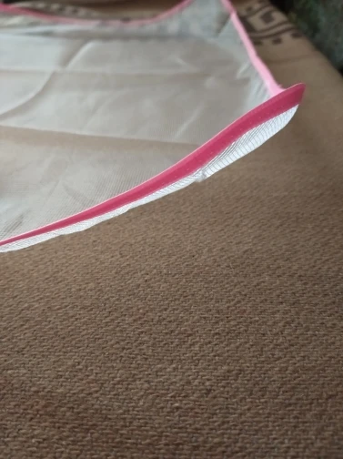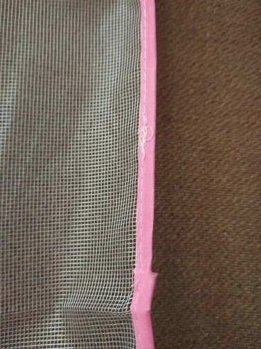 Доставка быстрая. Ткань - мелкая сетка, на вид все отлично. Обработка аккуратная, все ровно, очень красиво. В деле не использовала.