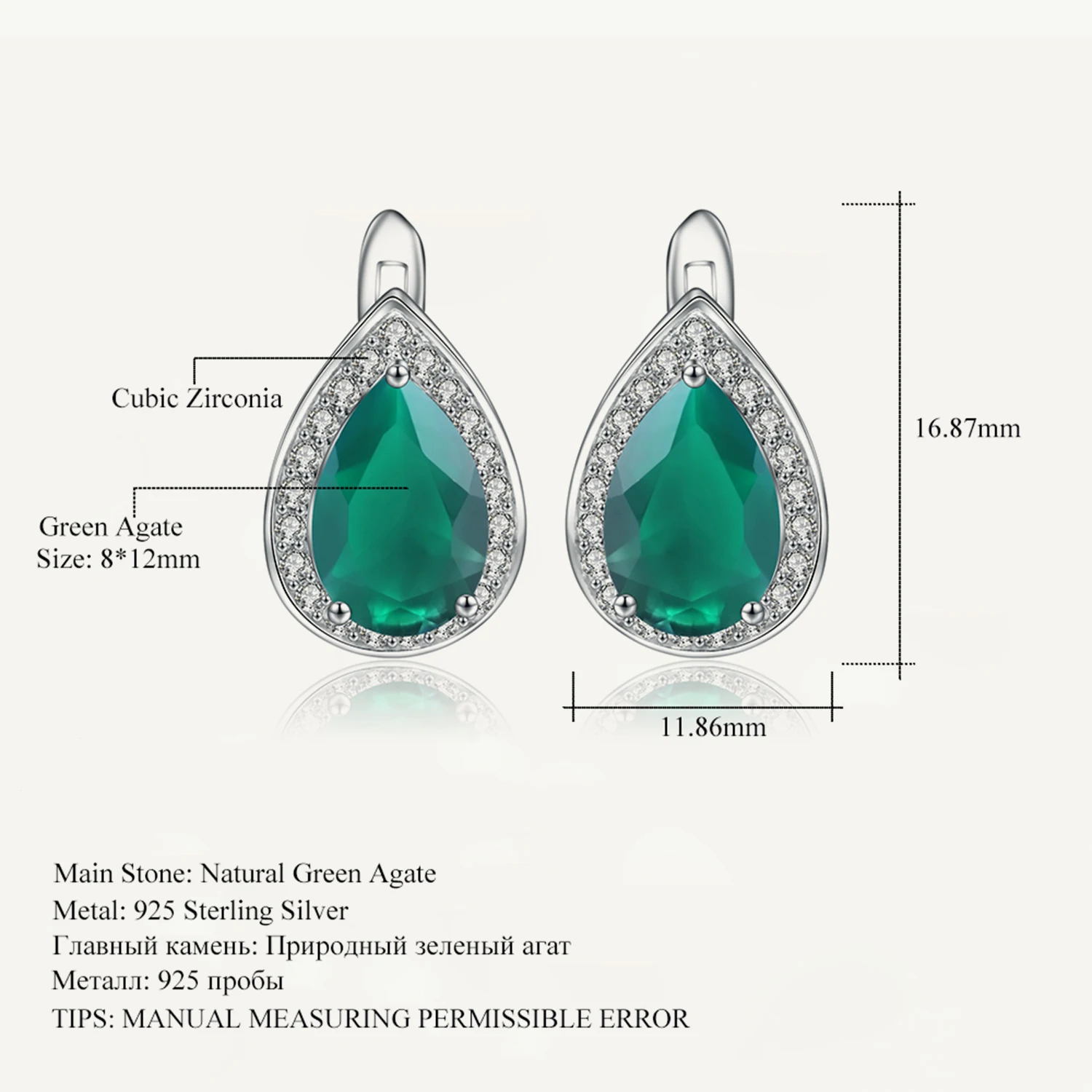 Женские Балетные серьги GEM'S, классические серьги-гвоздики из серебра 925 пробы с натуральным зеленым агатом и Каплевидным камнем, ювелирные украшения