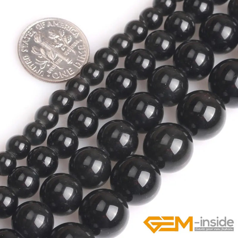 Бусины из натурального черного обсидиана диаметром 15 дюймов, 1,5-2 мм, с большим отверстием, размер на выбор: 6 мм, 8 мм, 10 мм, 12 мм