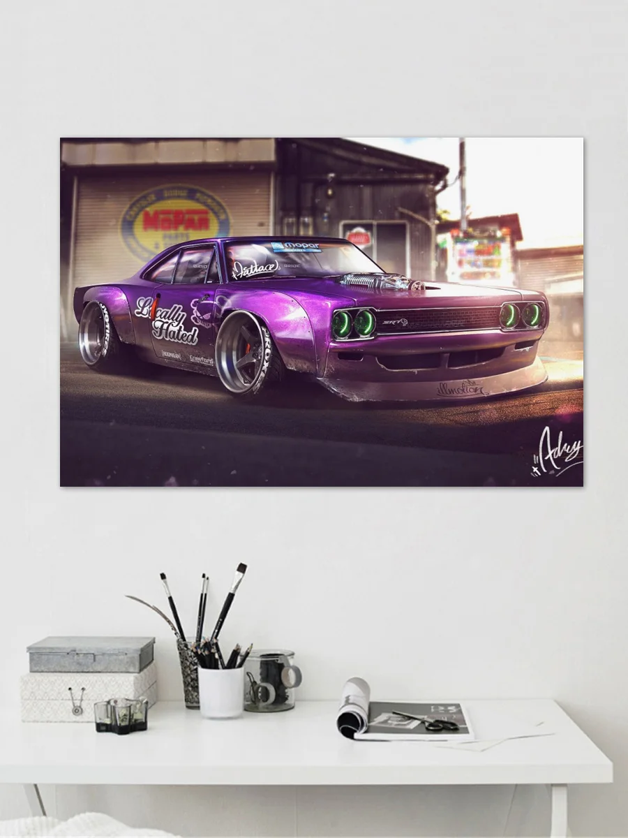 Художественный спортивный автомобиль, автомобили Plymouth Road Runner, ткань, фотография, домашнее искусство, украшение для гостиной ME105