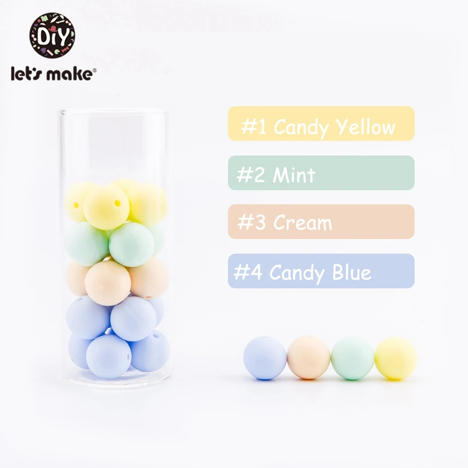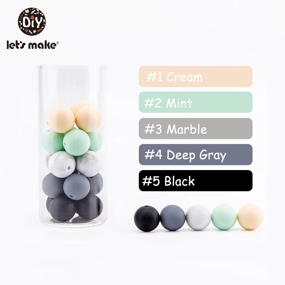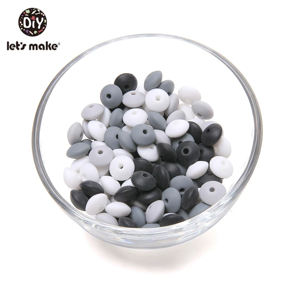 Let's Make Силиконовые Круглые бусины для детей 12 мм 60 шт. безопасные пищевые силиконовые детские браслеты для прорезывания зубов