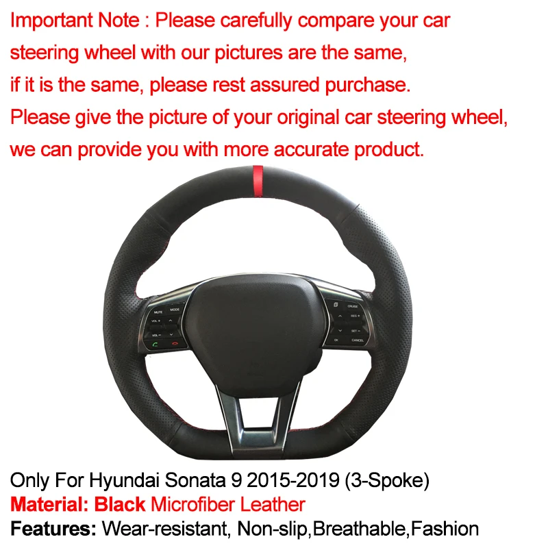 Ручной швейный чехол рулевого колеса автомобиля волантовая оплетка на руле для Hyundai Sonata 9 2015 2016 2017 2018 2019 (3 спицы)
