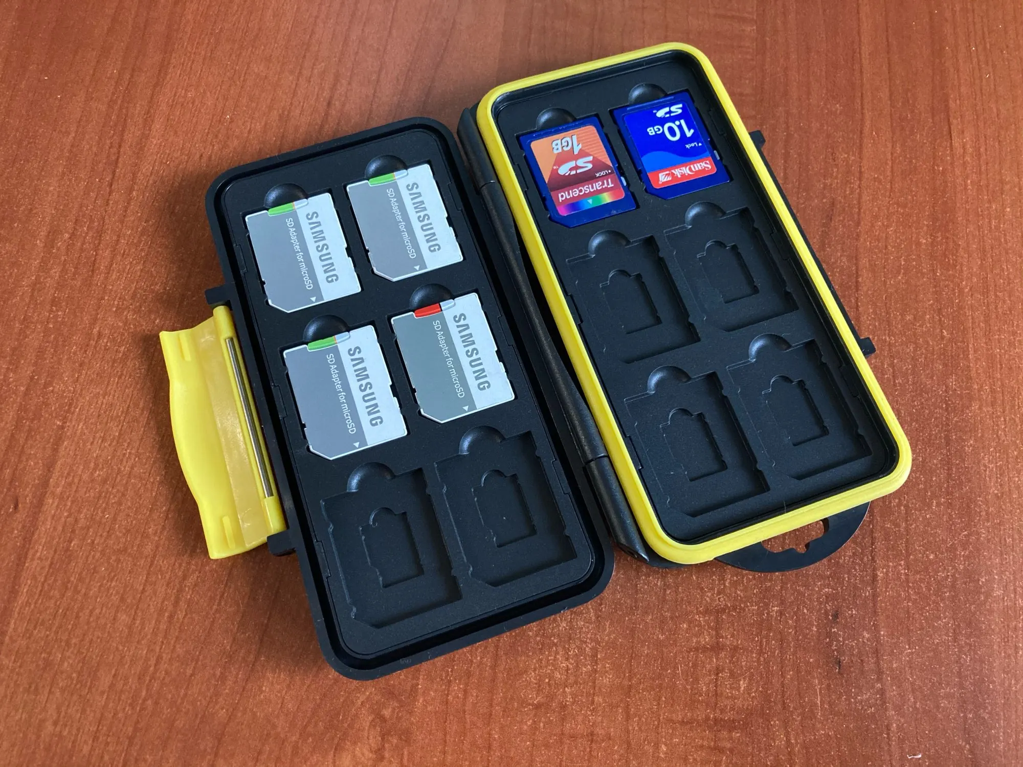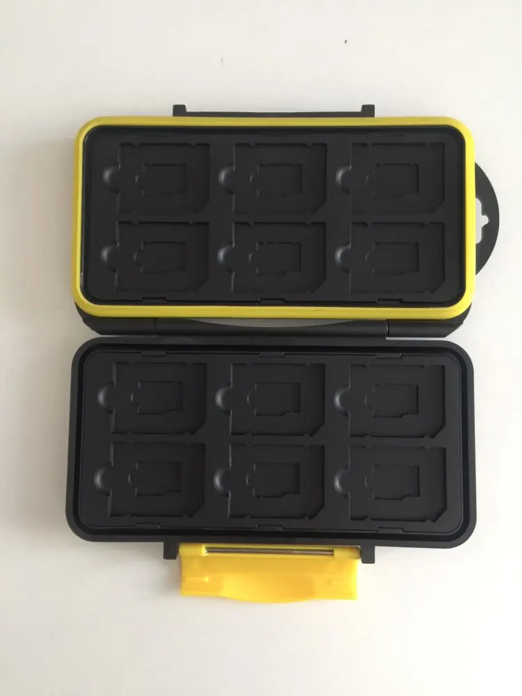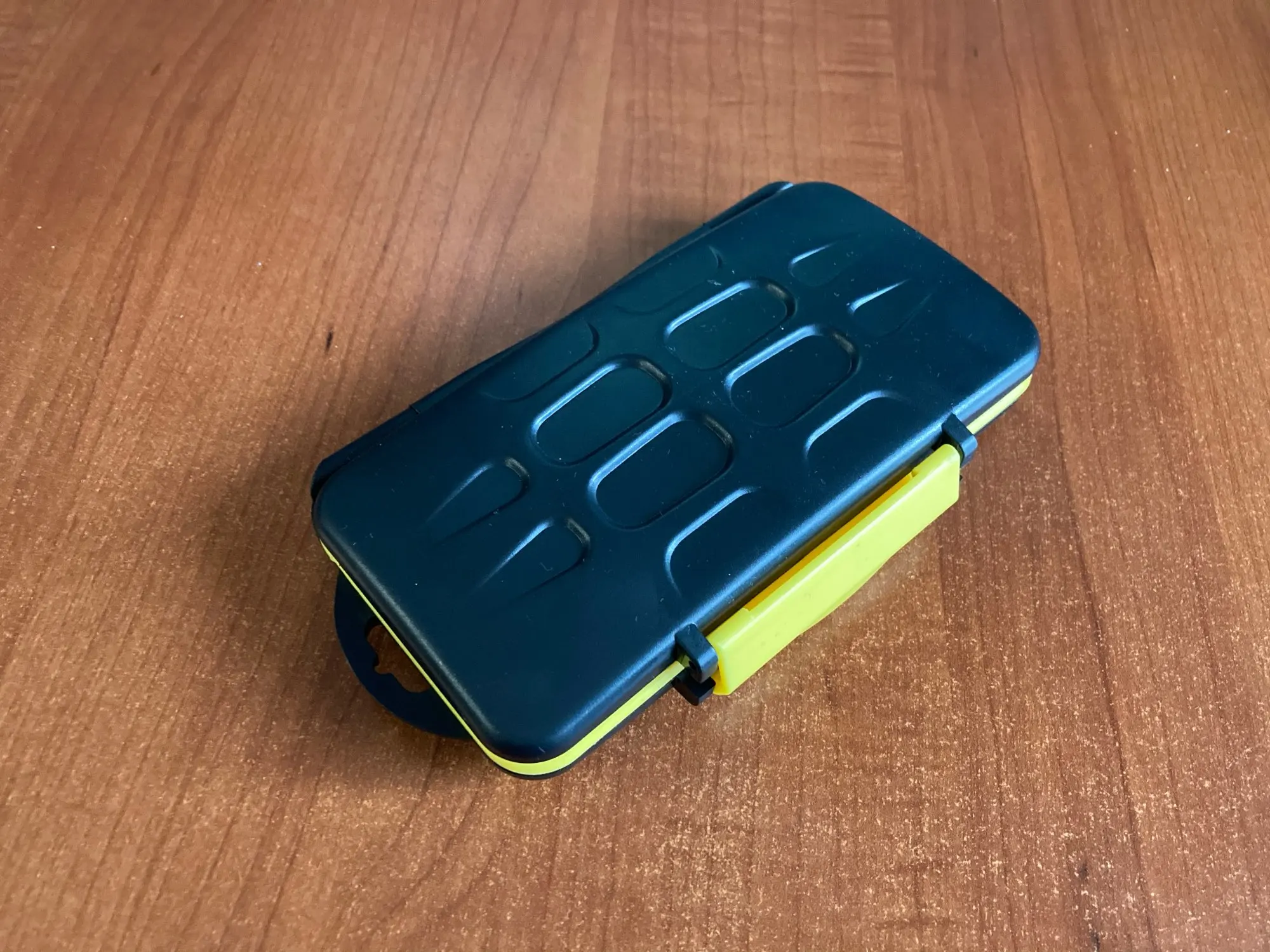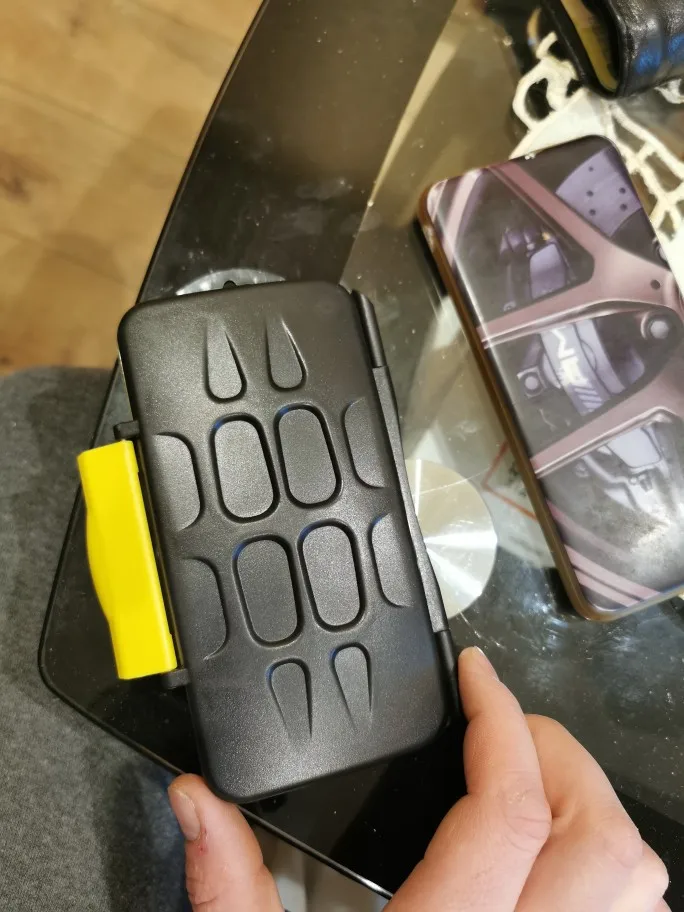 Ящик для хранения карт памяти дает ощущение надежности и прокладка, по-прежнему, кажется, герметично закрывает воду от попадания. Также ударопрочный. Посылка была доставлена дольше, чем указано время, и отслеживание не проводилось.