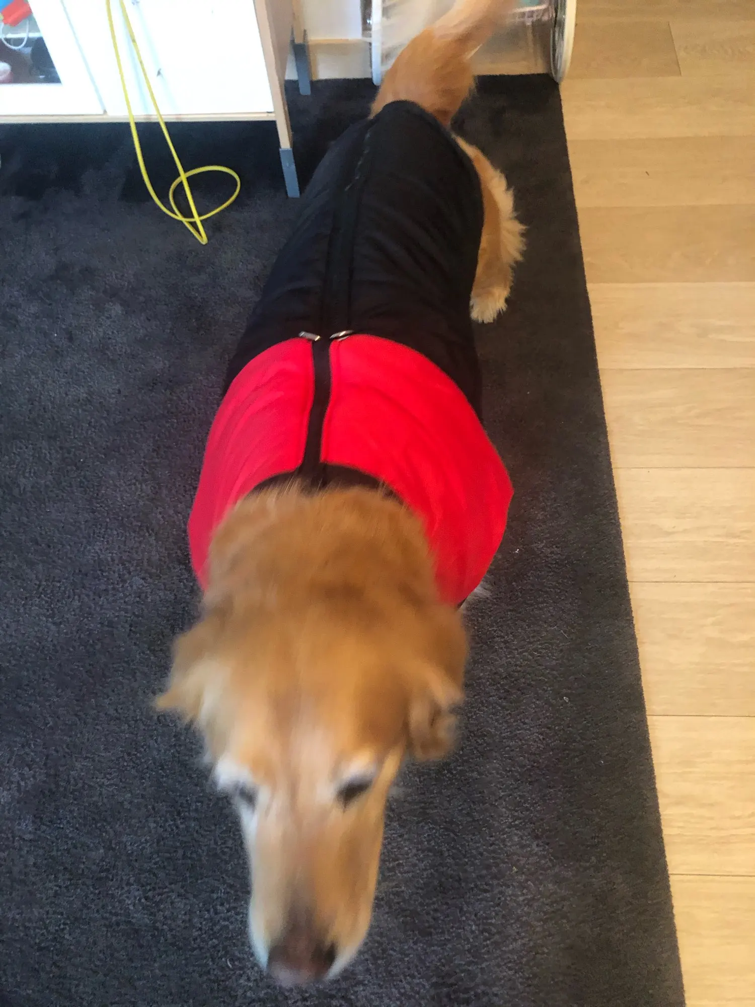 Жилетка пришла через 3 недели, прошита хорошо, молния рабочая, размеры соответствуют таблице, брали на взрослого джек-рассел-терьера, сидит хорошо, собак доволен, бегать удобно, даже не замечает. Посмотрим на сколько хватит в активном режиме прогулок. Но на погоду рассчитан больше осень или тёплая зима, не ниже - 3°, жилетка лёгкая.