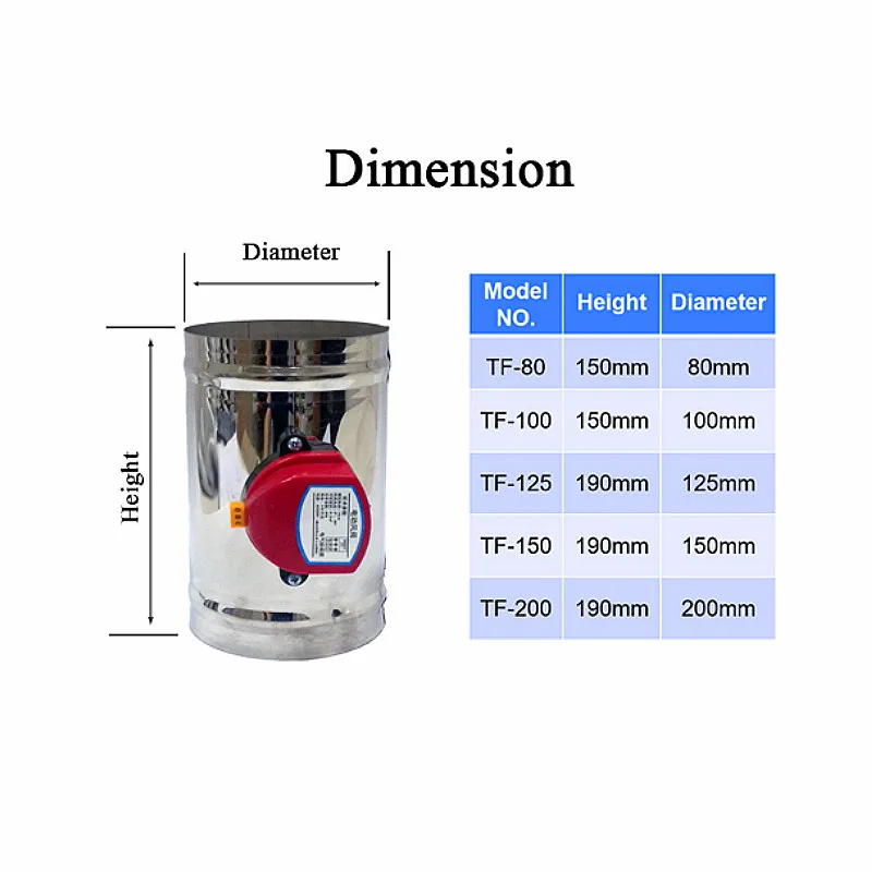 Электрическая воздушная заслонка воздуховода из нержавеющей стали 80100125150200 мм, вентиляционный клапан HVAC, воздуховод, моторизованный воздушный амортизатор AC220 в