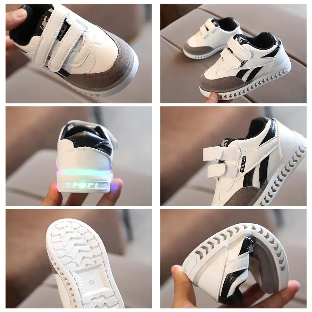 Светящиеся кроссовки, детская обувь, детские кроссовки из ПУ кожи, водонепроницаемая Спортивная обувь для мальчиков, теннисная дышащая детская светильник кой