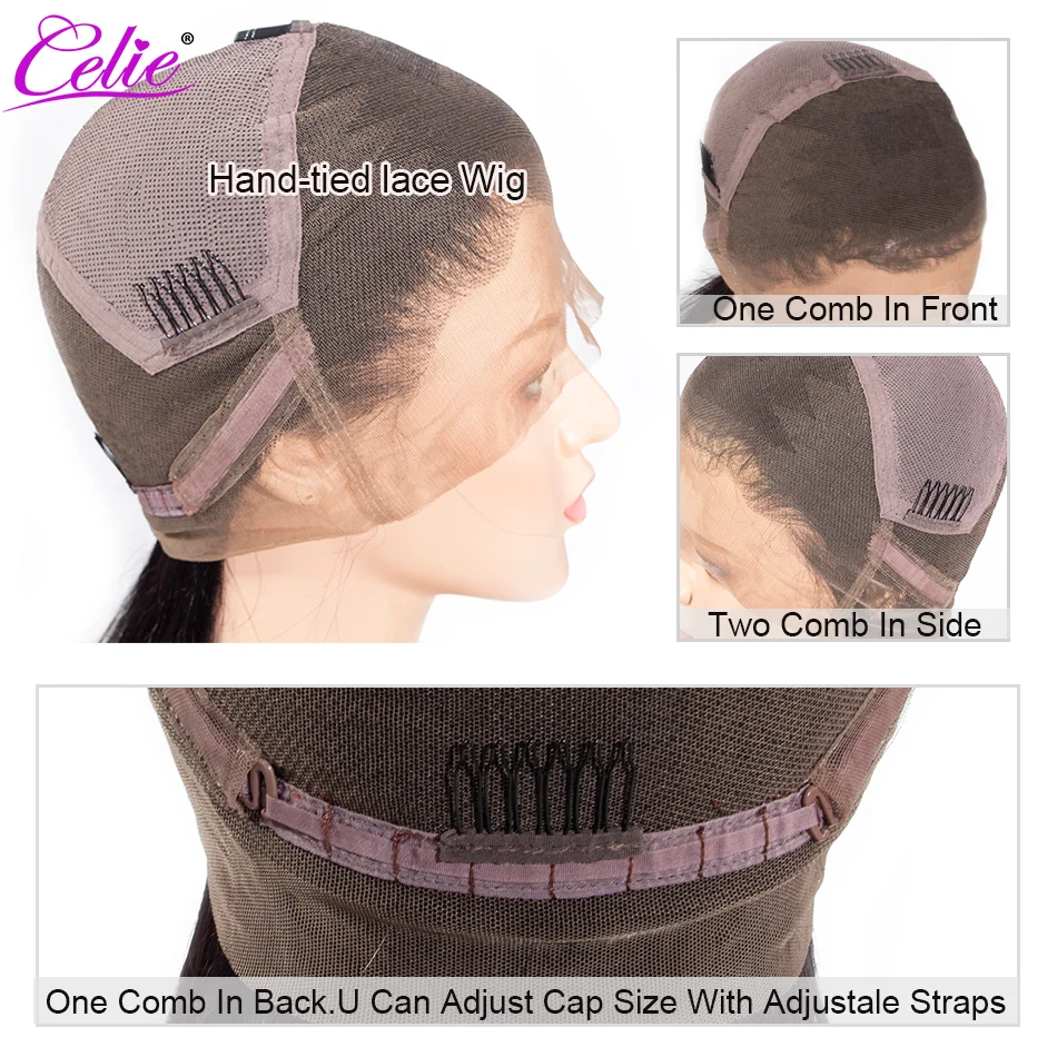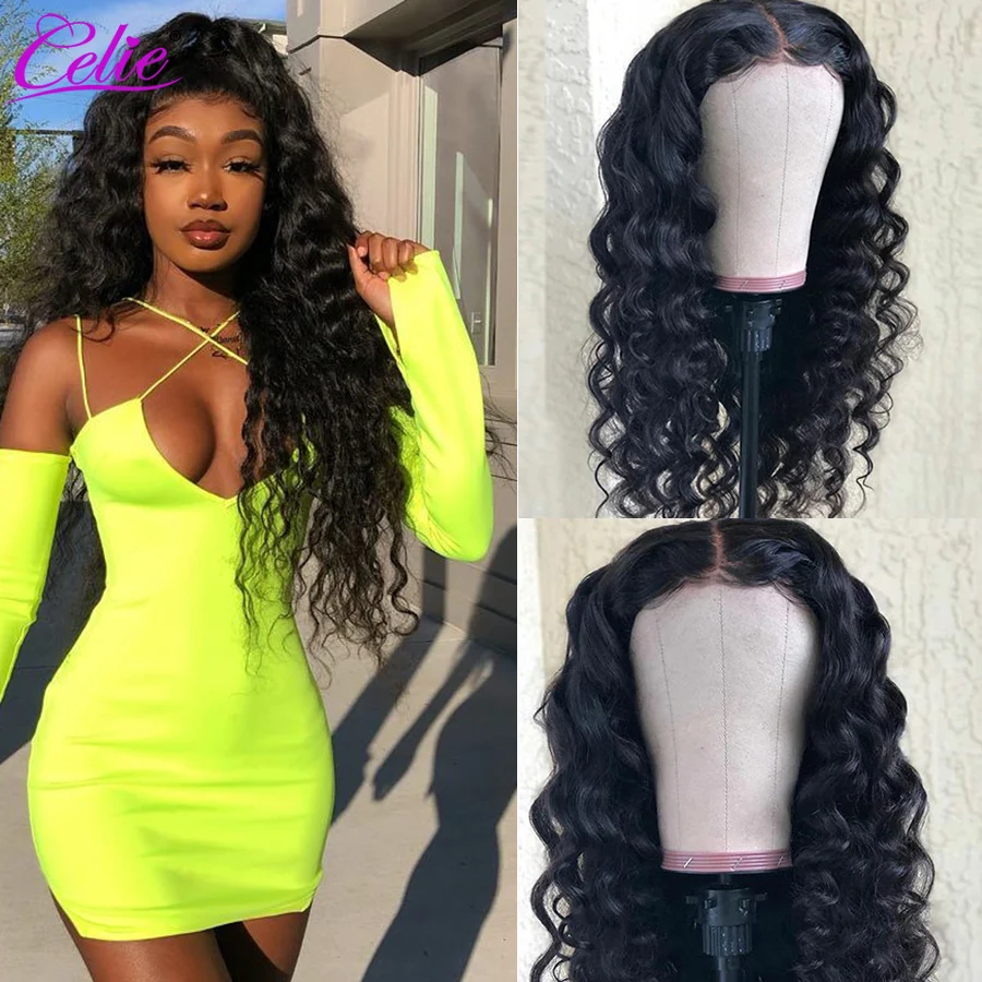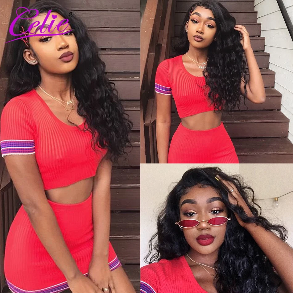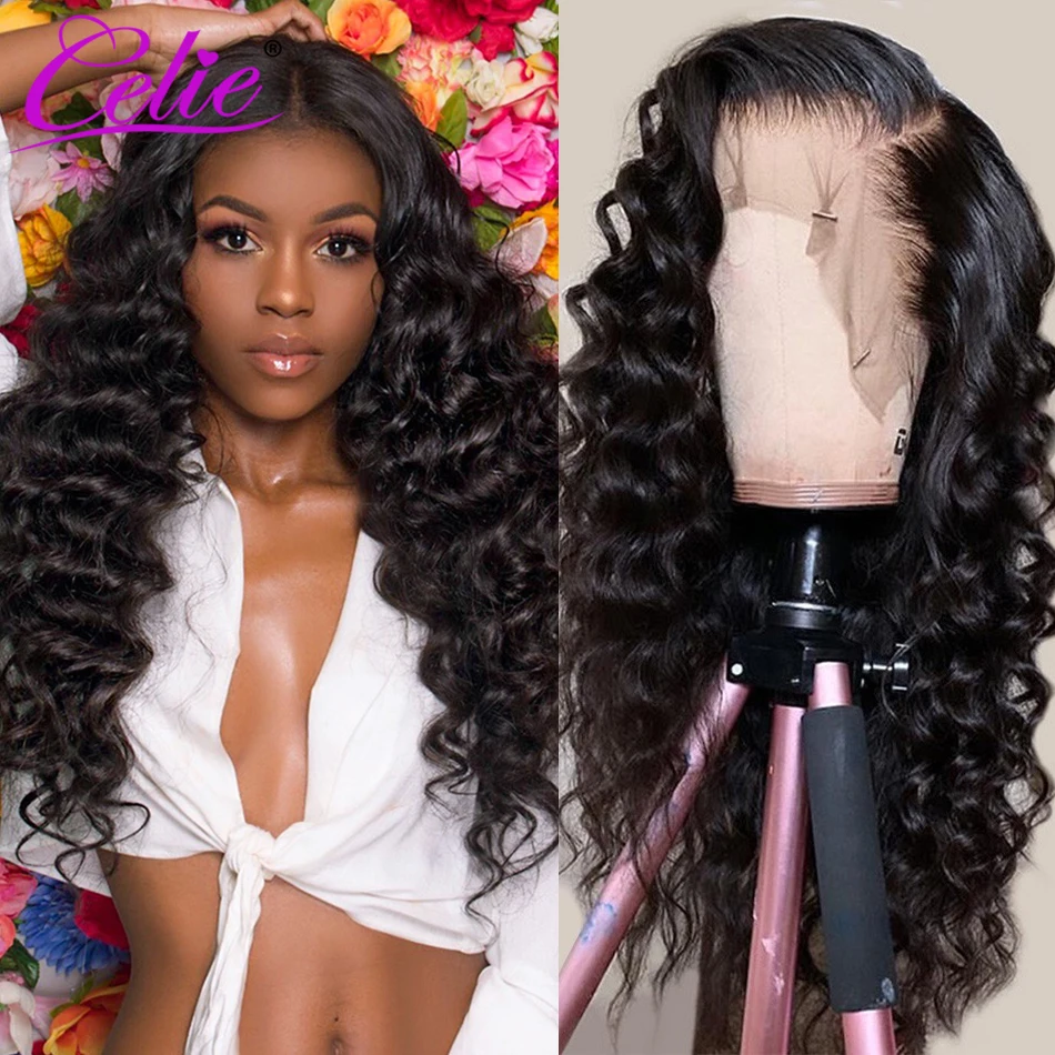 Celie Волосы Бразильские свободные глубокая волна полный парик шнурка 100 человеческие волосы парики с детскими волосами предварительно выщипанная линия волос для черной женщины