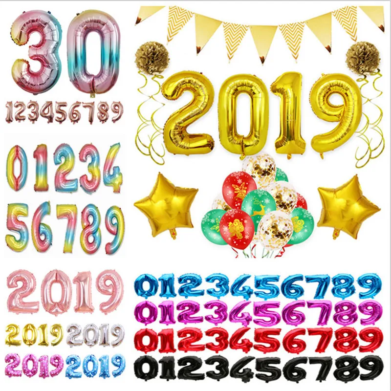 32 дюйма фигурка из серебра, с цифрами, числами, Фольга воздушные шары День рождения Свадьба декабря цвета: золотистый, серебристый синий розовый надувной газообразным гелием шары