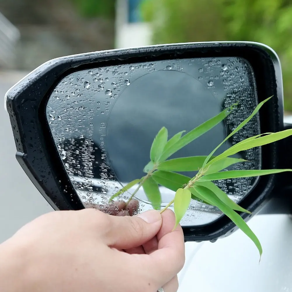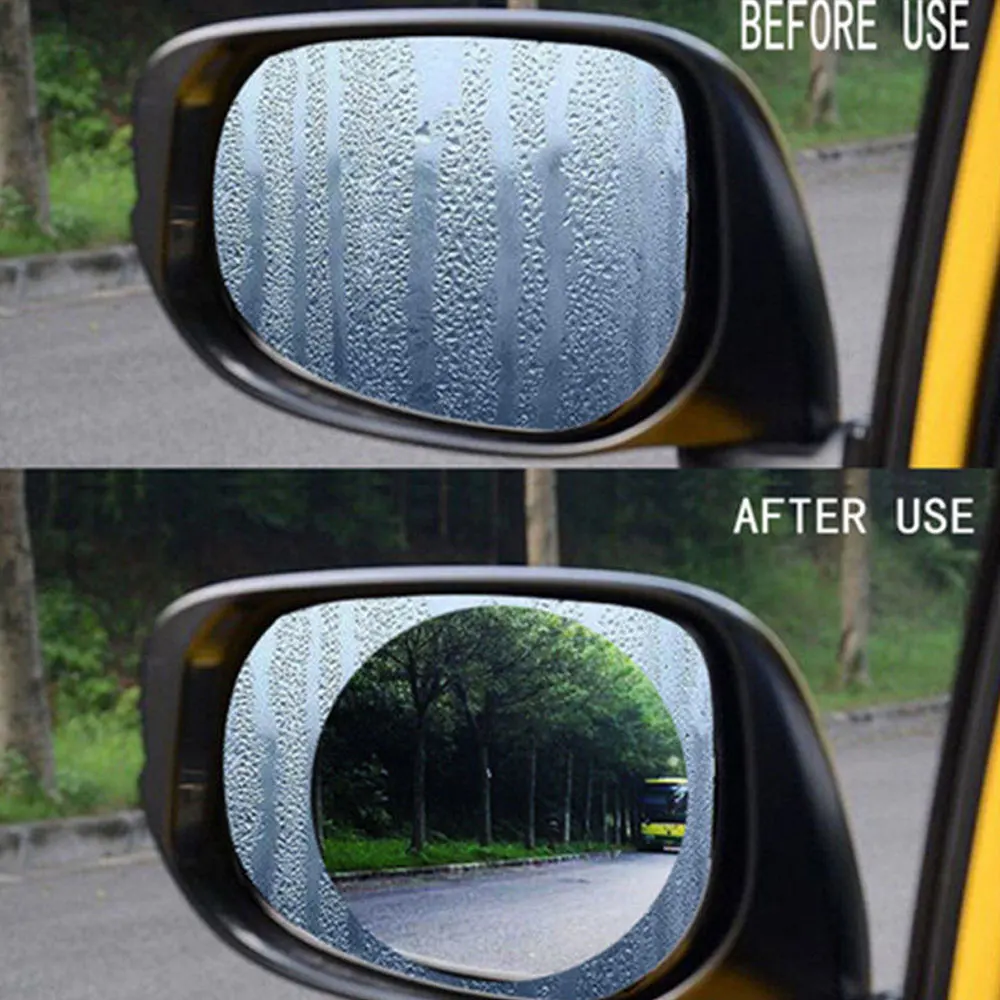 > Высокотехнологичный дизайн: ПЭТ + нано защитная пленка с коэффициентом пропускания 99%, анти-туман, Антибликовая, анти-туман, водонепроницаемый, непромокаемый, которая эффективно защищает вашу безопасность вождения в дождливый или туманный день, держите зеркало заднего вида чистым все время.