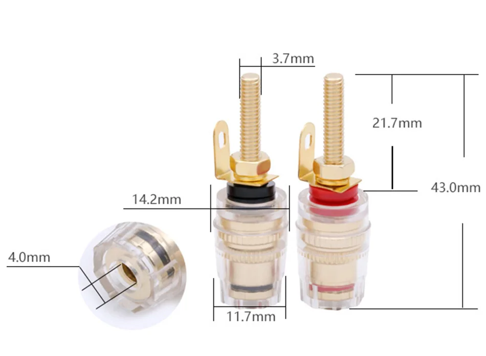 4 шт., позолоченные клеммы для кабеля, 4 мм