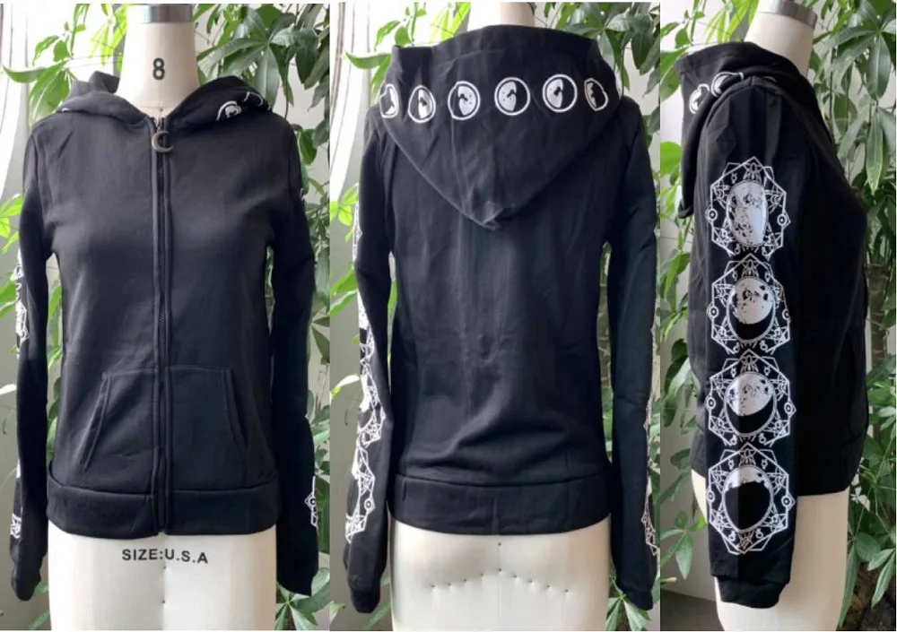 Rosetic готическое женское платье с капюшоном и принтом Луны в готическом стиле, модное Повседневное платье с капюшоном на весну и лето, короткие платья с длинным рукавом 2021