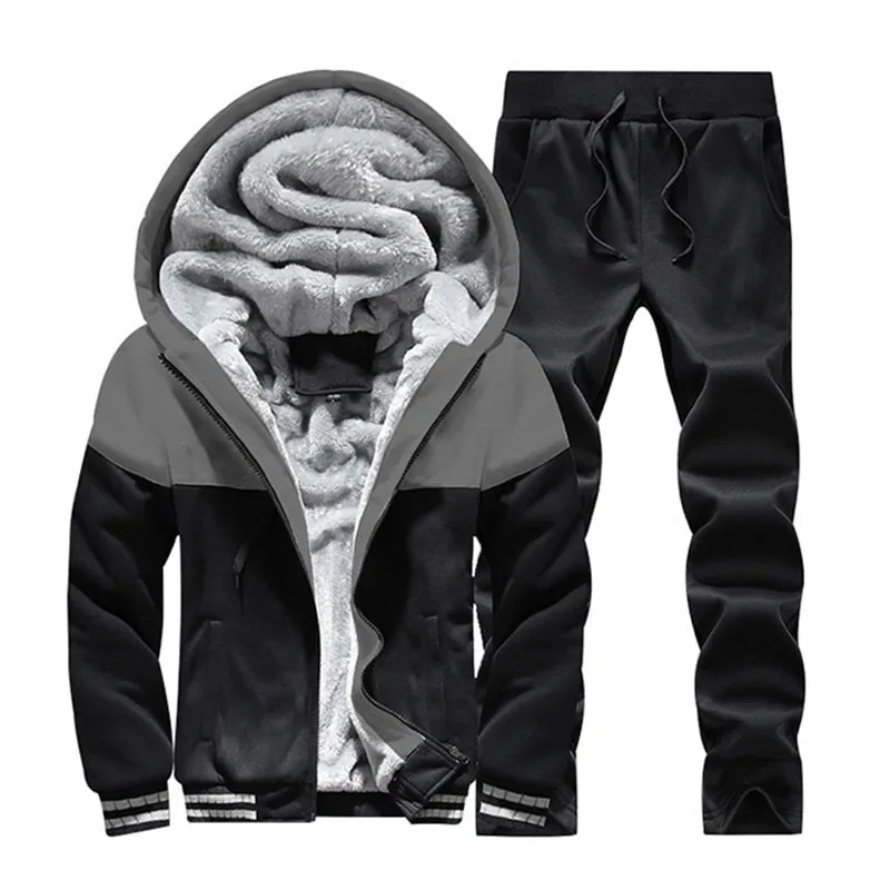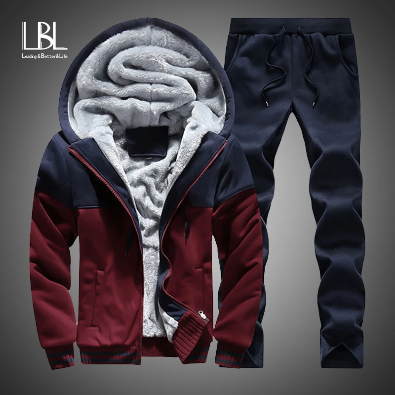 Плотные мужские теплые комплекты 2022, модный спортивный костюм, Лоскутная толстовка на молнии с капюшоном + спортивные штаны, мужские комплекты из 2 предметов, тонкий спортивный костюм