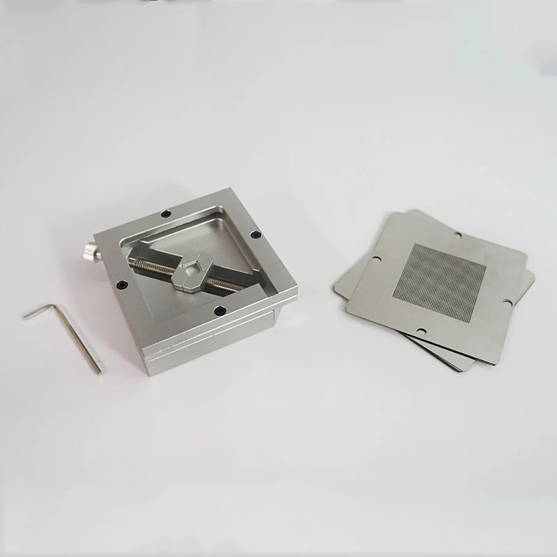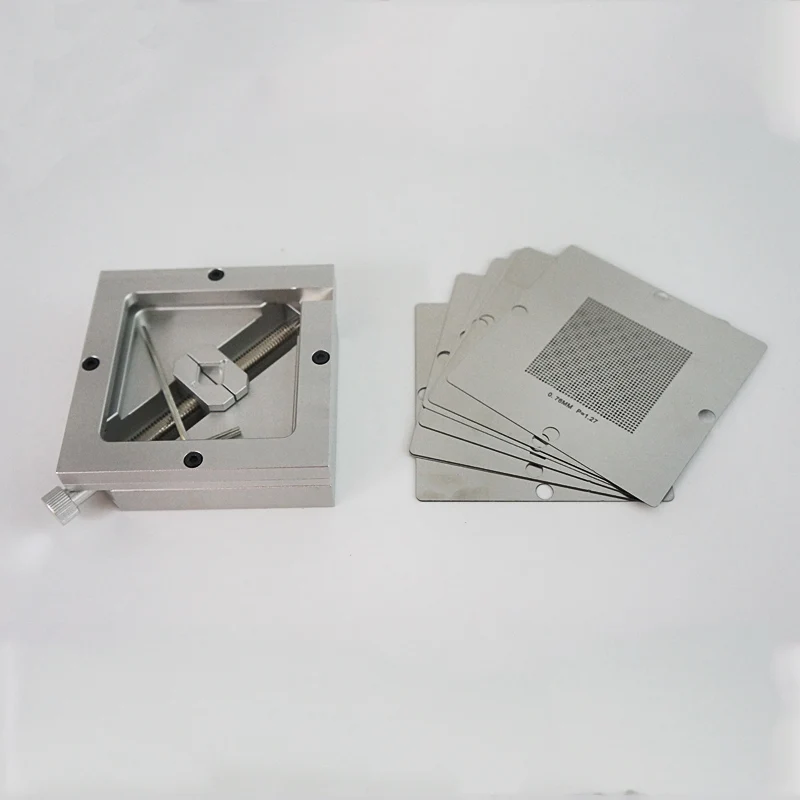 Комплект для реболлинга BGA, серебристая база для реболлинга 90*90 мм 90x9 0 мм с 10 шт. универсальными трафаретами для ремонта микросхем и пайки